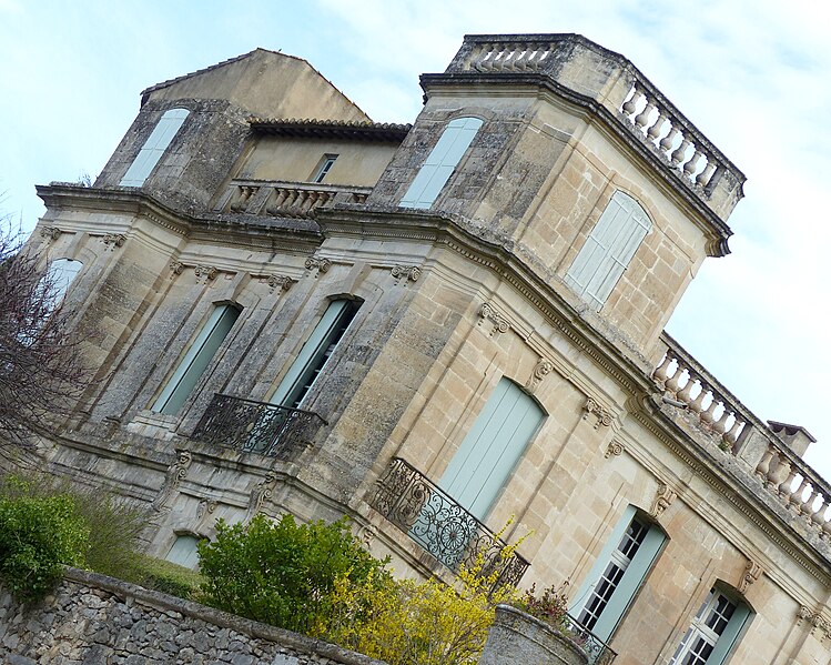L'attribution de l'édifice à Jean-Antoine Giral est plausible au regard de l'élégance et de la technique de la façade, flanquée de deux pavillons à pans coupés et rythmée par des pilastres ioniques en ordre colossal surmontés d'une balustrade de pierre. Lors de la construction, des éléments provenant du château de la Mosson, démoli en 1758, furent remployés, notamment la ferronnerie des balcons du premier étage et un grand lustre, tandis que les boiseries du grand salon ovale, également issues de la Mosson, furent vendues au XIXe siècle. L'intérieur a conservé sa disposition et ses circulations d'origine. En remplacement des boiseries, M. Leconte-Normand installa de grandes toiles peintes de Jacques de la Joüe dans le salon de musique, dont l'acoustique naturelle, équilibrée, convient particulièrement aux instruments baroques ; ce salon abrite un petit orgue positif et surtout un clavecin du XVIIIe siècle utilisé pour de nombreux enregistrements. Ce clavecin a fait l'objet d'une importante discographie, saluée par la critique et par de nombreuses récompenses, avec notamment les intégrales de Rameau et de Couperin par Scott Ross ainsi que des enregistrements de Jacques Duphly, Domenico Scarlatti, Jean-Philippe Rameau, Jean-Sébastien Bach et Louis Marchand par des interprètes tels qu'Elisabeth Joyé, Frédéric Hass, Jean Rondeau, Benjamin Alard, Justin Taylor et Emmanuel Arakélian. Scott Ross, hôte régulier, disposait d'une chambre dans la tour sud-ouest jusqu'en 1983 ; il fréquenta le lieu et mourut ensuite dans une maison située en face du château. La famille Demangel perpétue la vie musicale du lieu et conserve une collection d'instruments anciens à clavier, parmi lesquels cet exceptionnel clavecin anonyme français du XVIIIe siècle. Le château est également reconnu pour ses décors intérieurs remarquablement conservés, ses façades et ses garde-corps en fer forgé provenant du château de la Mosson ; une statue en terre cuite des « Indes Galantes » orne la salle à manger. En tant que château de village, ses jardins restent de petite taille et sont principalement ornés d'imposants buis taillés du XVIIIe siècle. L'ensemble comprenant le château et ses deux galeries est classé au titre des monuments historiques depuis le 14 septembre 1937, tandis que les façades et toitures de la tour-pigeonnier sont inscrites depuis le 10 avril 1989. Enfin, si une croyance associe souvent Louis d'Assas, dit le chevalier d'Assas, au château, la famille dont il est issu avait émigré au Vigan à la fin du XIVe siècle ; aucune source n'indique qu'il se soit rendu au château et la seigneurie n'appartenait plus aux d'Assas depuis près de trois siècles.