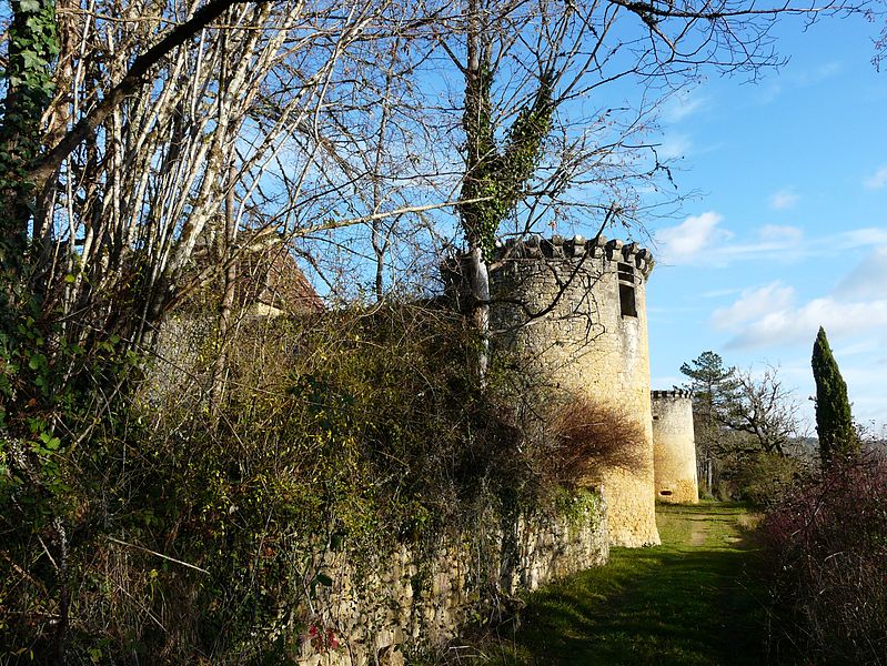 Édification du mur d'enceinte cantonné de tours rondes et d'un chemin de ronde.