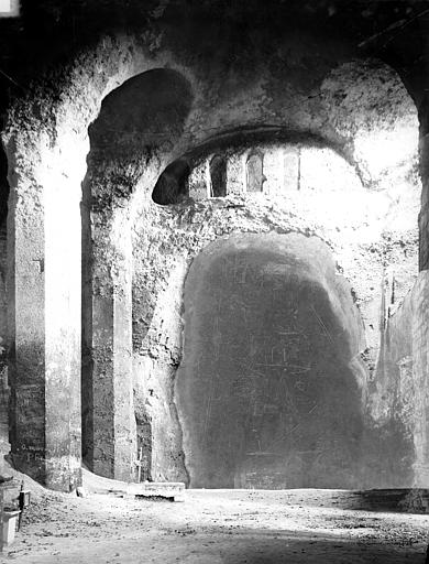 Le château est bâti au-dessus d'une église troglodytique profondément creusée dans la butte et agrandie au XIIe siècle ; une galerie souterraine relie encore le château au déambulatoire de cette église. La motte primitive, d'environ quarante mètres de diamètre, a été formée par le creusement d'un fossé dans le calcaire et l'apport de terres au sommet ; elle présente des parois verticales de cinq mètres percées de galeries souterraines et s'appuie sur une muraille à pan coupé. Dans la contrescarpe, des habitats troglodytiques subsistent, et à la base de la falaise un pavillon voûté en croisées d'ogives, construit vers 1600, a servi de chapelle et renferme une cage d'escalier en vis médiévale. Les fossés et esplanades fortifiées ont été en grande partie comblés ou supprimés aux XVIIe et XVIIIe siècles, mais l'on conserve les bases de quatre tours rondes, des fragments de murailles, une tour carrée qui était la poterne et une aile de communs. La poterne conserve au sud l'emplacement du pont-levis et l'arc de la herse ; un chemin de ronde, dont les mâchicoulis ont peut‑être été décorés au XVe siècle, courait sur trois faces. Au nord se trouve la chapelle à décoration extérieure de style Renaissance ; à l'est, l'enceinte et les vestiges de la tour Saint-Jean s'accrochent à la falaise, et les soubassements de cette tour sont encore visibles. Côté sud, une tour-porte ornée d'armoiries du début du XVIe siècle et un corps de logis, dont les parties conservées remontent au milieu du XVe siècle, complétaient l'accès au château. Des jardins entouraient l'ensemble ; on note aussi les vestiges d'une orangerie.