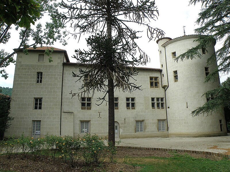 Château, y compris l'escalier en vis et les décors des pièces suivantes : fruitier de la tour sud-est, salle à manger gothique de l'aile est ; bibliothèque, salon jaune, salon vert au rez-de-chaussée de l'aile sud ; galerie, oratoire et chambres du premier étage (chambre aux lauriers, au carquois) ainsi que les communs et le parc avec son mur de clôture (cad. AM 218, 220) : inscription par arrêté du 31 décembre 1996