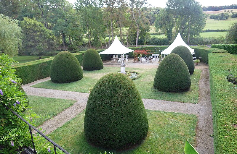 Au sud du château, des murs terrassant et un escalier à double révolution dominent un parc de deux hectares ; l'escalier comporte une rampe en fer forgé du XVIIIe siècle et deux pots à feu de style Louis XV et surplombe un nymphée. Face à l'escalier, un massif de topiaires centenaires entoure une statue de la nymphe Erignie tenant une hure de sanglier. Le jardin conserve aussi une ancienne glacière, une fabrique et une pièce d'eau conçue dans l'esprit du Canope de la Villa d'Hadrien à Tivoli, alimentée par un canal de dérivation. Les communs, les façades et les différents éléments du parc complètent l'ensemble patrimonial visible autour du château. La maison de Mauléon, dont Jean‑Blaise (†1613) est la figure fondatrice, est encore évoquée par les noms de Louis de Mauléon, François de Mauléon (†1633), Charles‑François de Mauléon (†1668) et par les patronymes Henriette et Gabrielle de Mauléon.