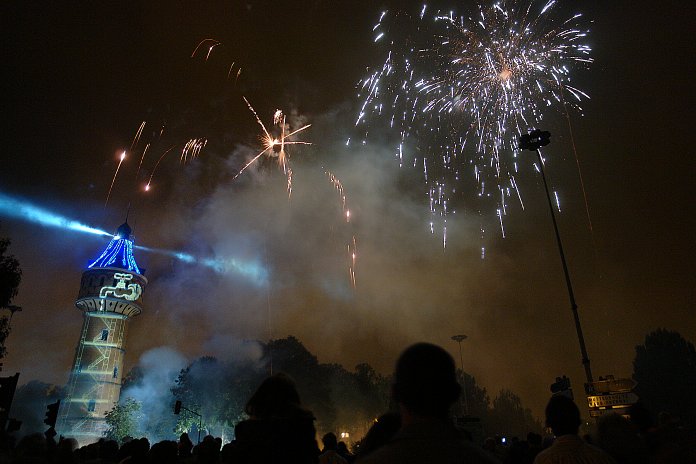 Spectacle pyrotechnique organisé pour le centenaire du château d'eau.