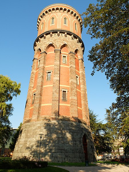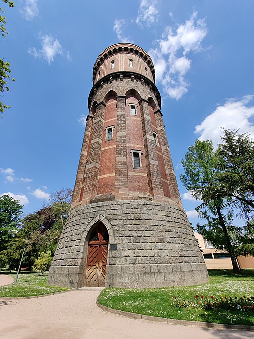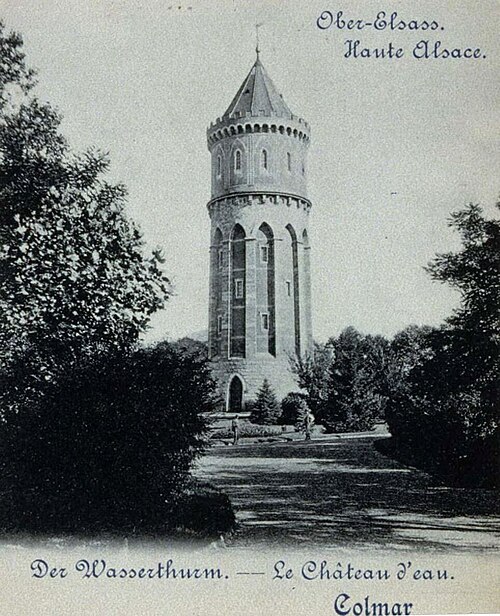 Le château d'eau de Colmar est un monument historique situé avenue Raymond‑Poincaré, dans le quartier sud de la ville, au sein du Parc du Château d'eau, adjacent à la cour d'appel ; le parc occupe une superficie de 13 990 m². Il a été construit entre 1884 et 1886 sous la direction de l'architecte Victor Huen, les sources mentionnant comme ingénieur soit Henri Bruner, soit Heinrich Grüner. Il a été inauguré le 22 juin 1886. Les sources indiquent une mise hors d'exploitation en 1983 et une désaffectation effective depuis 1984. De 1959 à 1985, le bâtiment a abrité les collections du musée d'histoire naturelle et d'ethnographie pendant l'aménagement de ce musée rue Turenne. L'édifice est inscrit au titre des monuments historiques depuis le 16 avril 1993 ; sa toiture, datant de 1961, fait toutefois exception. C'est l'un des plus anciens châteaux d'eau conservés dans la région, mais il n'est plus utilisé pour le stockage d'eau. Les sources donnent des capacités différentes, indiquant tantôt 1 200 m³, tantôt 1 000 m³. Le donjon mesure 12,3 m de diamètre et 53 m de hauteur. L'architecture illustre l'influence allemande du début du XXe siècle ; son escalier et sa façade sont particulièrement remarquables. La composition comporte des arcs brisés, des modillons, un appareil à bossages et des mâchicoulis.