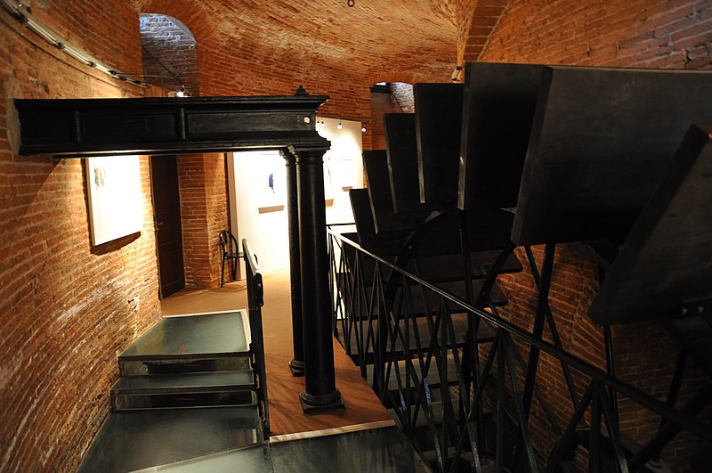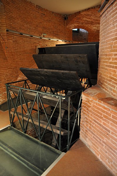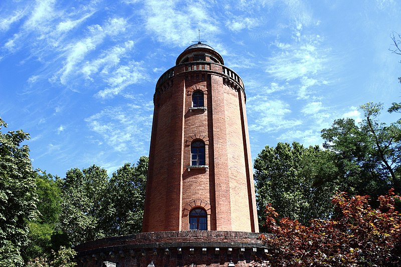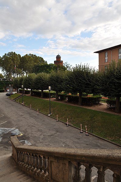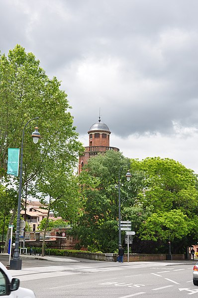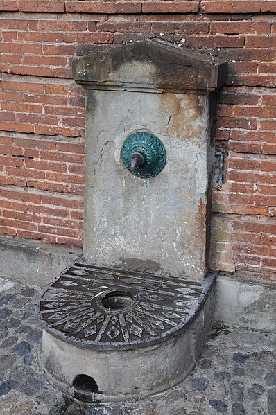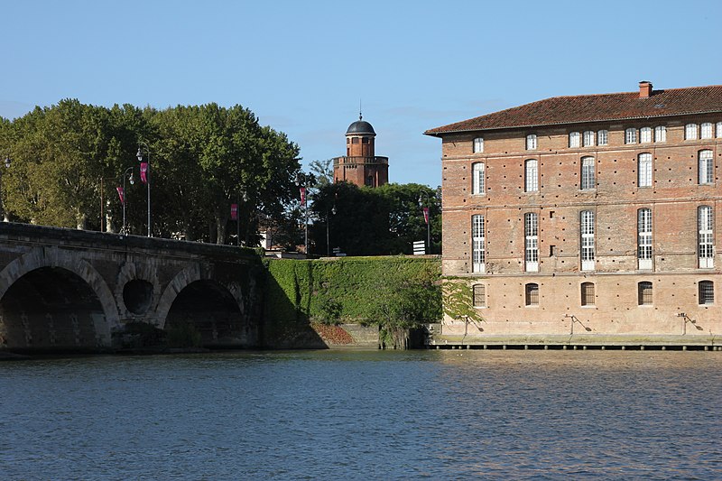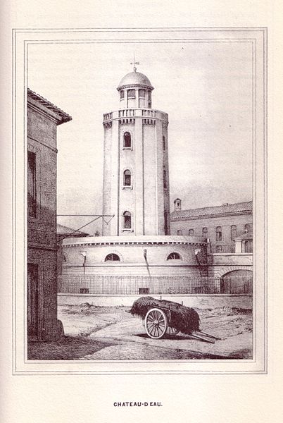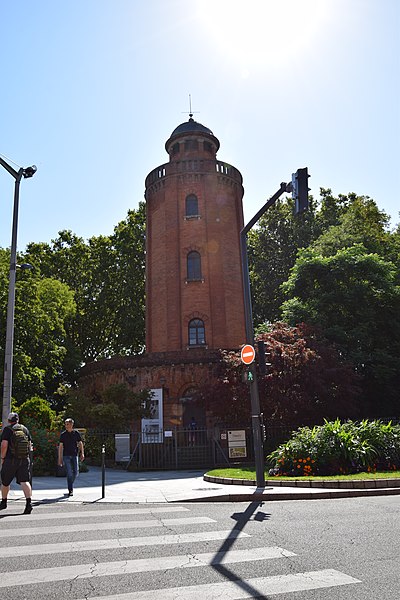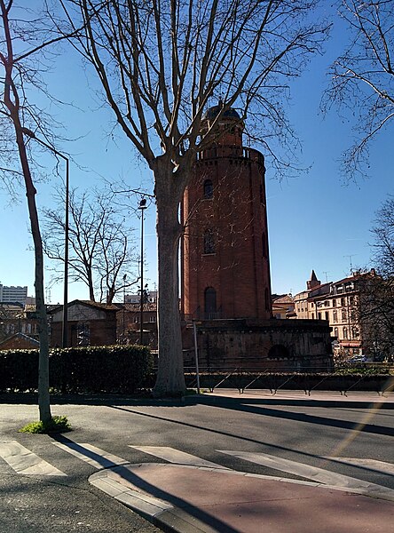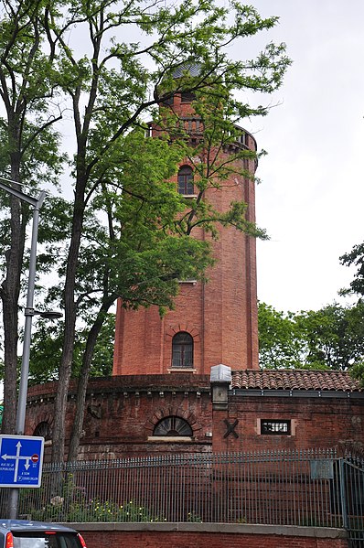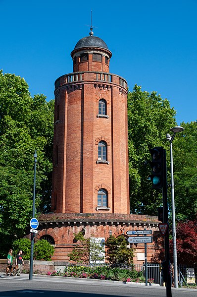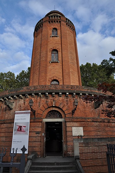Le Château d'eau et station de pompage, en brique, s'élève à la jonction du cours Dillon et du Pont-Neuf à Toulouse ; il servait à distribuer l'eau dans le centre-ville sans comporter de réservoir de stockage au sens habituel du terme. Sa réalisation résulte d'un projet municipal soutenu par le legs de Charles Laganne, qui mit une somme importante à la disposition de la ville pour l'alimentation en eau à la fin du XVIIIe siècle. Après des études et concours menés au début du XIXe siècle, l'architecte Jean-Antoine Raynaud conçut le bâtiment tandis que Jean-François Aubuisson des Voisins contribua à l'établissement du réseau de canalisation et Jean Abadie imagina la machinerie hydraulique. Les travaux, lancés au début des années 1820, aboutirent à la mise en service d'un réseau de fontaines distribuant l'eau dans la ville à la fin de la décennie. L'ensemble comprend une tour posée sur un soubassement circulaire à trois niveaux ; la tour atteint trente mètres et comporte au total sept niveaux, dont un vaste sous-sol réparti sur deux niveaux et un lanternon en sommet donnant accès à une terrasse. Le sous-sol abritait deux roues à aubes de 6,5 mètres de diamètre entraînant deux groupes de quatre pompes aspirantes-foulantes, couplées deux à deux pour assurer la continuité du service en cas de panne. Deux circuits d'eau arrivaient là : l'un, puisé à la Garonne et non filtré, alimentait les roues à aubes comme force motrice avant de repartir par un canal de fuite souterrain ; l'autre provenait de la filtration naturelle sous la prairie des Filtres, où l'eau s'infiltrait à travers un banc de sable et des galeries aménagées. L'eau filtrée était élevée par pompage vers une auge annulaire située au quatrième étage, qui jouait le rôle de trop-plein et de régulateur, puis redescendait par gravité pour alimenter les fontaines de la rive droite, notamment la place Rouaix, en traversant ensuite la Garonne par le Pont-Neuf. Le château d'eau fut très utilisé pendant plusieurs décennies, puis la galerie filtrante s'ensabla et la capacité devint insuffisante, conduisant à la construction d'équipements complémentaires et, finalement, à l'abandon progressif du site à la fin du XIXe siècle. Au XXe siècle, l'édifice a été transformé : confié au photographe Jean Dieuzaide au début des années 1970, il a été réaménagé pour accueillir une galerie municipale de photographie, le rez-de-chaussée rouvert au public en 1974 et le premier sous-sol aménagé en espace d'exposition dans les années 1980, avec un rappel de la machinerie d'origine. Une partie des conduites et éléments mécaniques est encore visible, tandis que certaines pièces originelles, comme les huit pompes en cuivre et l'auge circulaire, ont disparu au fil des aménagements. Implanté sur la rive gauche de la Garonne mais destiné essentiellement aux fontaines de la rive droite, le bâtiment est depuis reconnu pour sa valeur patrimoniale et son rôle culturel ; le château d'eau et la station de pompage sont inscrits au titre des monuments historiques depuis le 28 septembre 1987.