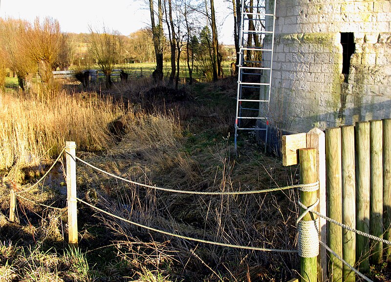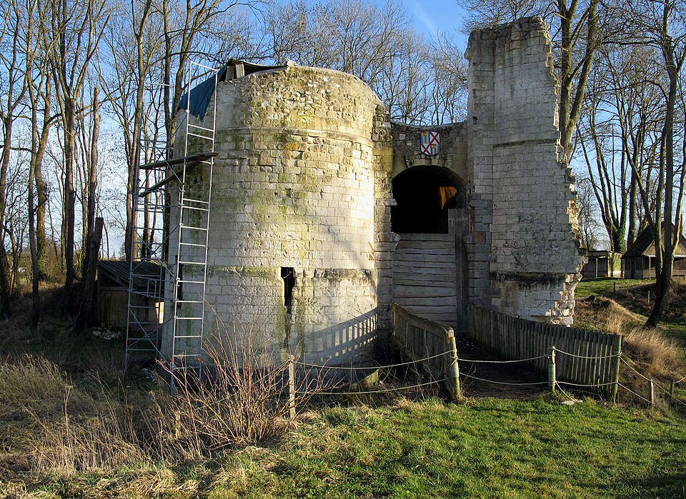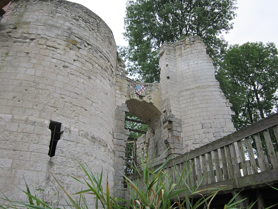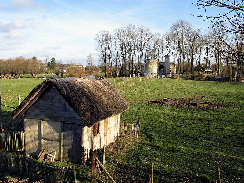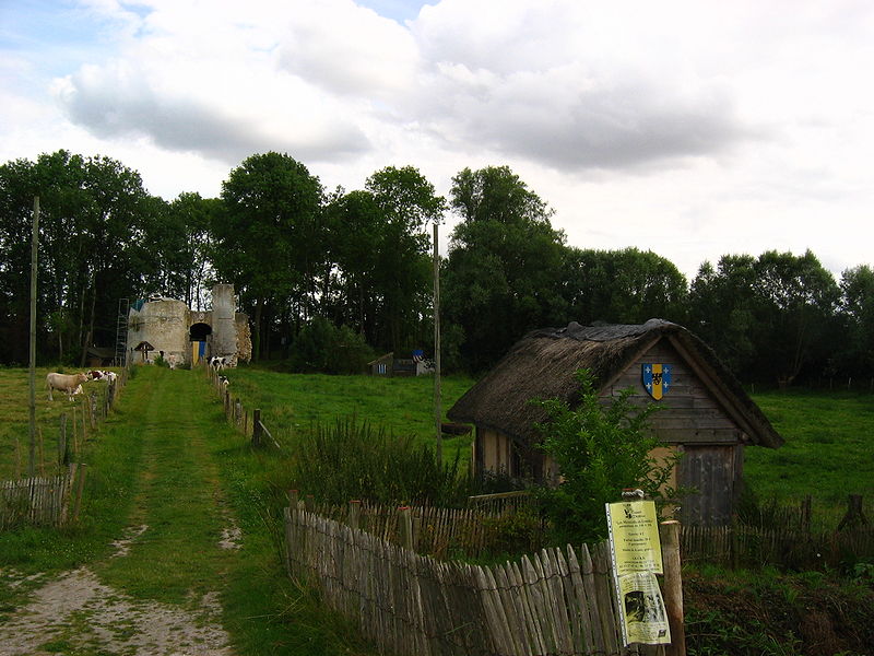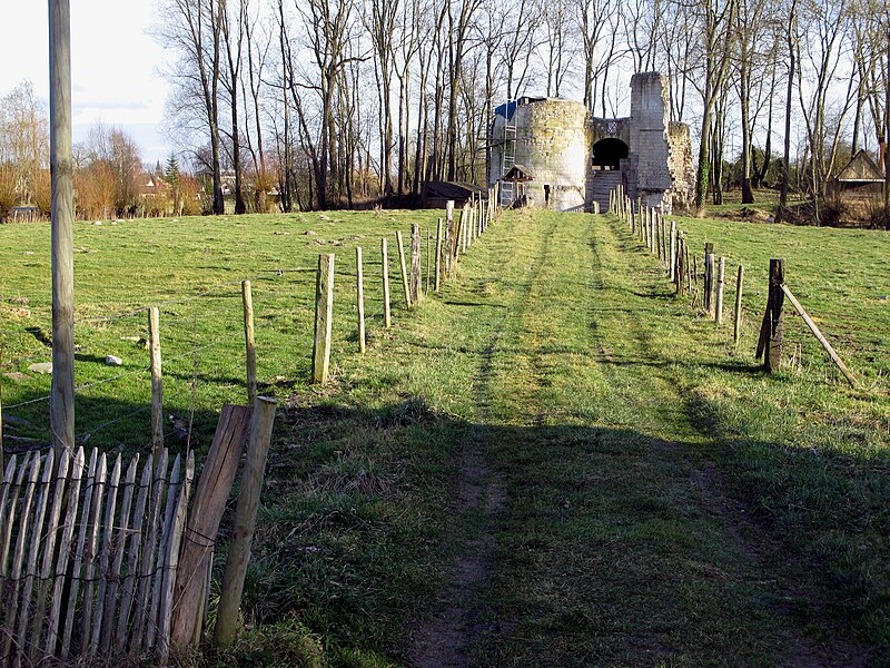 Les vestiges du château fort d'Eaucourt-sur-Somme, situés sur la commune d'Eaucourt-sur-Somme dans l'ouest du département de la Somme, correspondent à une fortification médiévale datée de la fin du XIVe siècle et du début du XVe siècle. Selon le pouillé diocésain de 1301, la chapelle Sainte-Marguerite y est déjà mentionnée sous le nom « Aqua curte », ce qui fait supposer une origine plus ancienne au XIIIe siècle. Au cours de son histoire, le château a connu des destructions et des reconstructions liées aux conflits de la fin du Moyen Âge : il fut démoli par les troupes municipales d'Abbeville vers 1358, occupé et disputé entre différentes armées au début du XVe siècle, incendié lors d'une offensive menée par Philippe le Bon, puis reconstruit en 1436 par le chevalier Jean d'Eaucourt. Il fut pillé en 1440 par Pierre Renaud de Vignolles et soumis à des transferts de seigneurie et d'alliances familiales aux XVe et XVIe siècles ; il subit encore des violences en 1589 lors des événements de la Ligue, après quoi il fut démantelé. Les dernières traces d'occupation résidentielle datent de la fin du XVIIIe siècle, lorsque François Vaillant y séjourna jusqu'en 1779. Après un long abandon, l'Association pour la Restauration du Château d'Eaucourt (A.R.Ch.E.), fondée en 1983 par Damien Maupin, a lancé les travaux de mise en valeur et de restauration du site et anime depuis des visites ludiques et pédagogiques. L'association a créé en 1996 un « espace médiéval » et organise des animations, fêtes et reconstitutions, dont un festival annuel des savoir-faire médiévaux en mai ; d'avril à juillet des journées pédagogiques accueillent groupes scolaires et centres de vacances. Le site est accessible en visite libre toute l'année et a connu une fréquentation croissante au début des années 2010, avec plusieurs milliers de visiteurs et des événements tels que les « rendez-vous du fleuve ». Des animations participatives pour la maternelle, le primaire et le collège, ainsi que des stages et chantiers pour adultes, mettent l'accent sur les techniques médiévales : taille de pierre, travail du bois, du cuir, du fer et des métaux précieux, ainsi que l'entretien d'un jardin médiéval. Des sondages archéologiques réalisés en août 2015 ont mis au jour l'existence d'une tour polygonale et des restes du logis seigneurial, situés dans la partie opposée au châtelet d'entrée. Le château, entouré de fossés, présentait une enceinte rectangulaire d'environ 40 sur 50 mètres et d'une élévation estimée à six ou sept mètres. Le châtelet d'entrée, au nord-ouest, jouait le rôle de donjon-refuge : il était pourvu de mâchicoulis, renforcé par deux tours en façade encadrant le pont-levis et complété à l'arrière droit par une tour de guet dotée d'un escalier en vis. Sur le front d'entrée subsistent l'arcade en arc surbaissé du passage, restaurée en 1989, la feuillure du tablier du pont-levis et les rainures verticales destinées au passage des bras, ainsi qu'un vestibule carré — la « salle de garde » — voûté en croisées d'ogives. La porte ouvrant sur la Baye, en plein cintre, était surmontée d'un tableau décoratif où figurait un écu martelé porté par un sauvage et un triton, accompagné de la devise « Sans Ayde » (l'ayde étant un impôt). Le reste des fortifications est largely arasé, quelques murs subsistant à l'arrière du site. R. Belleval, vers 1860, décrit le donjon comme un massif carré indépendant flanqué de trois tours rondes couronnées de mâchicoulis, proche par son architecture de celles du château de Rambures, et rapporte qu'en 1795 le donjon et plusieurs tours étaient encore en élévation avec leurs toitures ; selon lui, la destruction du château avait précédé celle du donjon. Les observations anciennes et récentes concordent sur l'importance archéologique et patrimoniale du site, dont la restauration et l'animation poursuivent la connaissance et la valorisation.