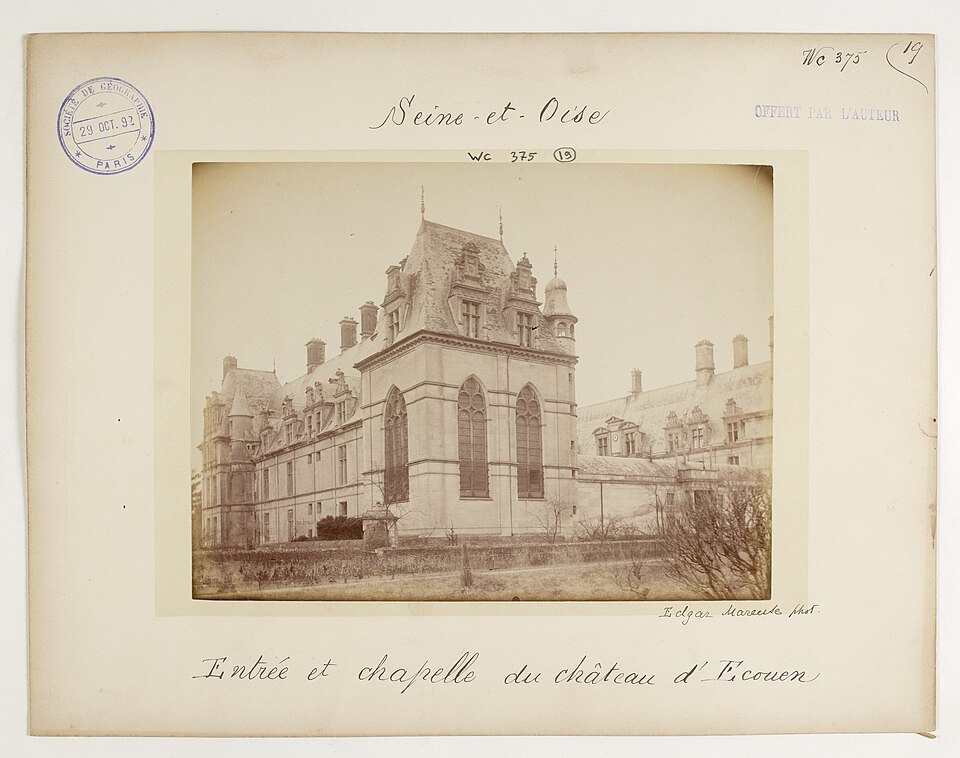 Le château d'Écouen, édifice de style Renaissance, a été construit pour le connétable Anne de Montmorency entre 1538 et 1555 ; Jean Bullant en fut le principal architecte et Jean Goujon signa de nombreuses sculptures. Élevé sur une butte dominant la Plaine de France, il remplaça une forteresse médiévale qui commandait les terres et les voies vers Paris. Le plan originel est un quadrilatère flanqué de quatre pavillons d'angle ; des aménagements ultérieurs ont permis d’accueillir des appartements royaux et d’enrichir le décor. Anne de Montmorency fit appel à des artistes et artisans renommés pour orner l’édifice de vitraux, sculptures, lambris, pavements et émaux. Une grotte commandée à Bernard Palissy en 1556 resta inachevée, et le jardin clos qui bordait l’angle nord‑est du quadrilatère a disparu au plus tard depuis la fin du XVIIe siècle, dont subsistent toutefois des traces dans le mur de soutènement de la terrasse. Rapidement lieu de villégiature princier, une aile entière fut réservée aux séjours du roi Henri II. Après des péripéties qui affaiblirent la maison de Montmorency, le domaine passa entre plusieurs mains et entra dans la possession de la famille de Condé. Les princes de Condé firent redessiner le parc par Jules Hardouin‑Mansart ; le tracé actuel conserve des axes perpendiculaires soulignés par des alignements d'arbres, des allées ouvrant sur des belvédères et des ronds‑points, ainsi qu’une terrasse et des parterres devant la façade ouest. Pendant la Révolution le château devint bien national et servit d’hôpital, de prison militaire et de lieu de réunion. En 1805 Napoléon y installa une maison d'éducation de la Légion d'honneur destinée aux filles de personnes décorées ; une aile plus basse fut reconstruite peu après pour remplacer une partie démolie. Restauré aux Condé sous la Restauration, le domaine vit revenir la maison d'éducation sous le Second Empire, qui y demeura jusqu'en 1962. Au XIXe siècle le parc reçut des aménagements tardifs et la Fontaine Hortense, créée par Eugène de Beauharnais, constitue le principal vestige de cette époque. Le château fut inscrit à l'inventaire des monuments historiques en 1862 et l'ensemble du domaine a été classé en 2007. Après la guerre de 1870‑1871, un fort polygonal fut édifié dans la forêt d'Écouen pour la défense de la capitale ; des vestiges en subsistent et le fort a également été classé. En 1962 la maison d'éducation quitta les lieux et le ministère des Affaires culturelles choisit le château pour accueillir le musée national de la Renaissance, apte à présenter de grandes tapisseries et des collections nationales. Après des travaux de restauration, le musée ouvrit ses portes en 1977. Les interventions des années 1970 ont porté aussi sur le parc, avec la volonté de restituer l’esprit des aménagements anciens. Le château conserve d’importants décors d’origine — frises, menuiseries, pavements, vitraux, lambris et douze cheminées peintes — tandis que le mobilier ancien, dispersé à la Révolution, se trouve en partie dans d’autres musées. Le site conjugue aujourd’hui valeur architecturale et vocation muséale, offrant l’exemple d’une réalisation majeure de la Renaissance française et l’accueil d’une riche collection dédiée à cette période.