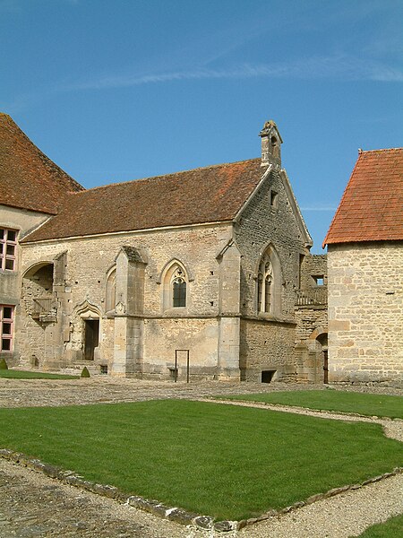 Le château d'Éguilly, château-fort initié au XIIe siècle, se trouve sur la commune d'Éguilly en Côte-d'Or, en Bourgogne-Franche-Comté, et est visible depuis le canal de Bourgogne et l'autoroute A6 qui le longe à quelques mètres, isolant le site à l'est du village. Il a été édifié sur l'emplacement d'une place forte en bois d'époque gallo-romaine : une voie gallo-romaine traverse encore la cour et, à une cinquantaine de mètres à l'est, la prairie conserve la trace d'une motte circulaire fossoyée qui portait probablement un donjon en charpente, vestiges bien visibles sur les photographies aériennes. La forteresse médiévale, dotée de solides remparts et de six tours, a été progressivement aménagée à la fin du Moyen Âge et, vers le XVe siècle, adaptée pour servir de résidence à un archevêque. Les deux tours rondes qui flanquent l'aile sud pourraient remonter au XIIe siècle, mais la date 1181 avancée par Courtépée paraît due à une lecture erronée d'initiales gravées sur l'écu du portail. La chapelle, placée sous le vocable de Saint-Hubert, et la construction du logis ainsi que du corps d'entrée remontent à la seconde moitié du XVe siècle ; ce dernier repose sans doute sur des bases plus anciennes, comme l'atteste une petite fenêtre du XIIIe siècle. Le logis a été profondément transformé à la fin du XVIe ou au début du XVIIe siècle — peut-être après le mariage de 1578 entre Françoise d'Éguilly et François de Choiseul — ce que prouvent la porte d'entrée, le décor peint du plafond de la grande salle du rez-de-chaussée et le puits couvert de la cour. Courtépée signale un "rebâtiment partiel" en 1692 pour les Choiseul ; ces remaniements semblent toutefois avoir concerné surtout la décoration intérieure, notamment plusieurs cheminées à décor de stuc à l'étage. Par alliances, la propriété passa aux familles de Choiseul puis de Mac-Mahon à la fin du XVIIIe siècle ; transformé en ferme puis abandonné, le château a été acquis en 1983 par Roger et Françoise Aubry qui ont entrepris une restauration d'une trentaine d'années, puis racheté en 2015 par Fabio et Françoise Magnani qui poursuivent les travaux. L'ensemble — château, communs et douves, chapelle, sol de la cour, mur de soutènement et puits couvert — a été classé monument historique par arrêté du 7 décembre 1993 ; l'ancien jardin a été inscrit à la même date et un projet de réaménagement a été confié à une architecte paysagiste de Versailles. Le site est entouré d'anciennes douves aujourd'hui partiellement comblées et asséchées, franchies par un pont dormant qui mène à l'entrée logée dans un avant-corps rectangulaire en saillie sur la façade ouest ; cet avant-corps constituait autrefois une tour-porte plus élevée, dotée d'une entrée charretière et d'une entrée piétonnière, chacune équipée d'un pont-levis dont les rainures d'encastrement sont encore visibles dans la façade. L'enceinte trapézoïdale, orientée sensiblement selon les points cardinaux, est flanquée de cinq tours : deux tours circulaires aux angles sud, interprétées comme anciennes, une tour carrée à l'est et deux tours carrées au nord disposées en biais par rapport à la courtine. Cette disposition des tours carrées, peu favorable à la défense, suggère qu'elles sont post-médiévales et peut-être élevées sur l'emplacement d'anciennes tours circulaires, leur plan quadrangulaire offrant des pièces à vivre plus facilement aménageables et servant d'extensions du logis ; la tour carrée de l'est s'appuie sur un bâtiment qui servait de logis à la domesticité. Les deux tours circulaires du sud, accolées à des bâtiments de servitude, ont conservé des canonnières et des embrasures destinées au tir. Les logis seigneuriaux forment un plan en L composé de deux bâtiments rectangulaires à rez-de-chaussée et étage avec combles éclairés par des lucarnes à fronton triangulaire ; la chapelle du XVe siècle possède une crypte. Le puits de la cour, cantonné de cinq colonnes galbées et cannelées, est couvert d'une coupole sculptée d'un décor de tuiles en écaille.