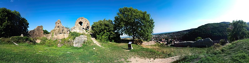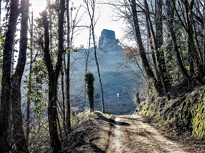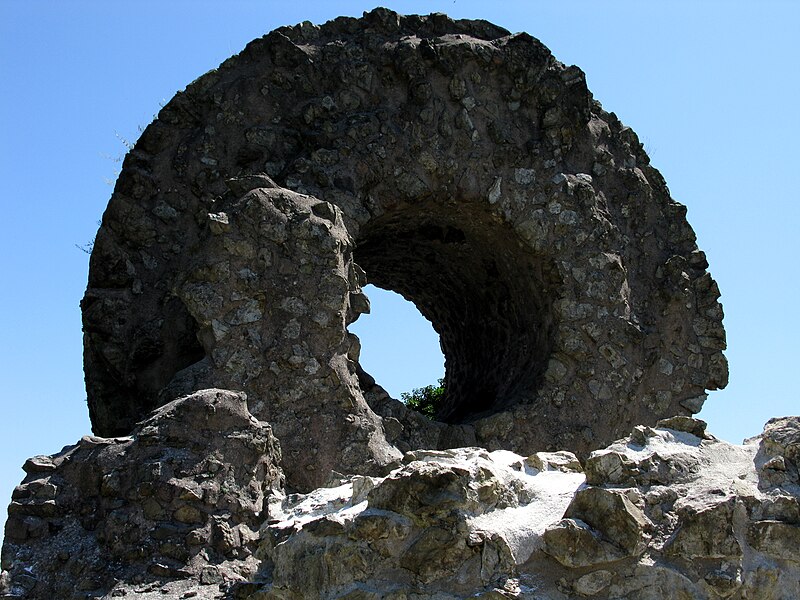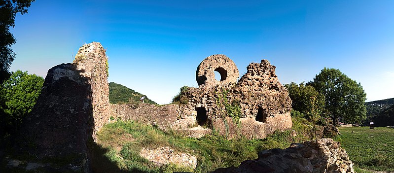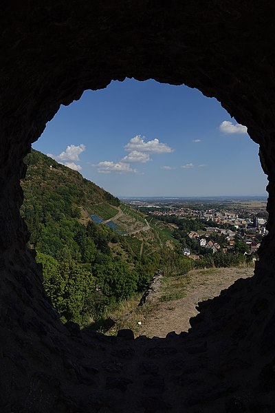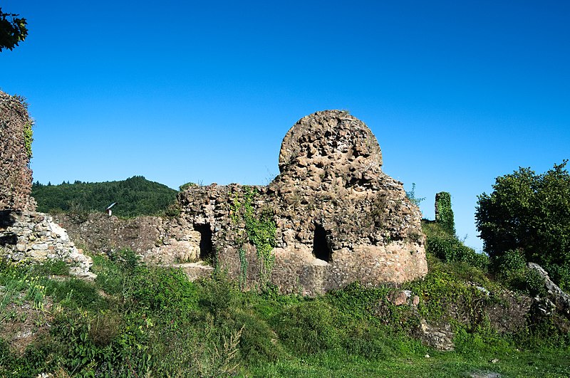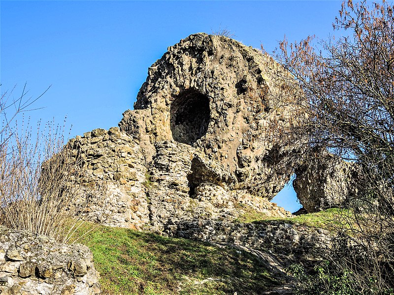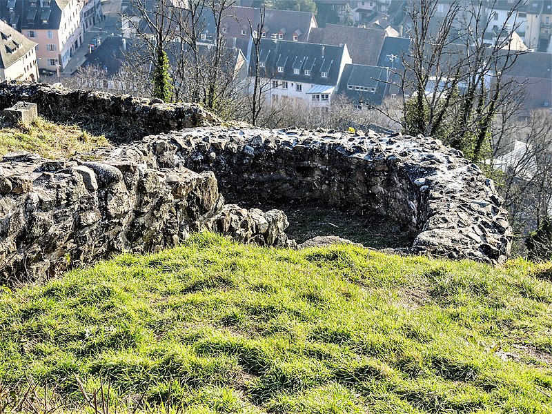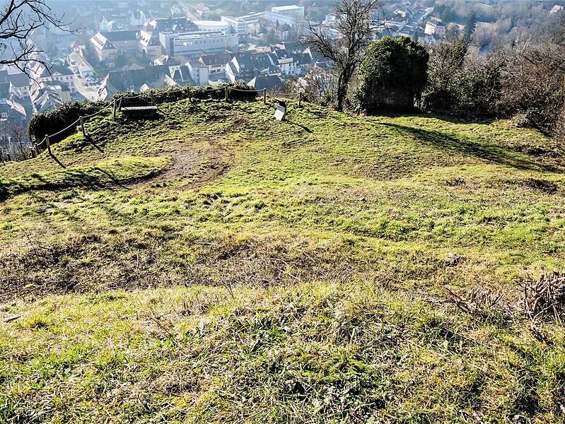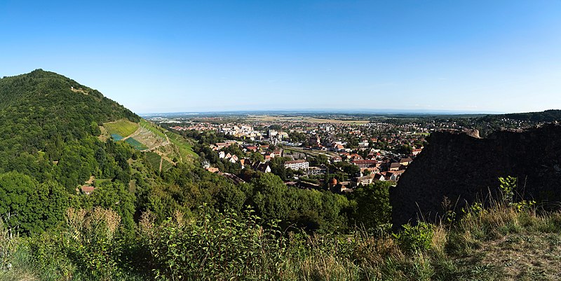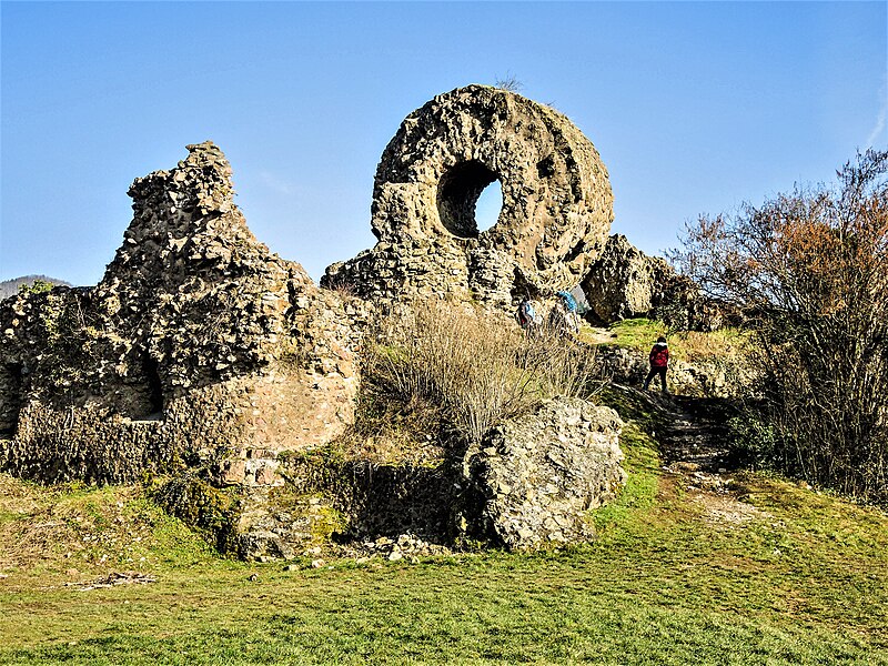 Les ruines du château d'Engelbourg, situées sur le site dit de l'Engelbourg à Thann (Haut-Rhin), étaient destinées à protéger le péage de l'entrée de la vallée de la Thur et furent élevées par les comtes de Ferrette. Des indices architecturaux, comme une chaîne d'angle en grès à bossage, suggèrent une existence dès la fin du XIIe siècle ; le château paraît avoir été reconstruit après 1220 et avant 1234, puis transformé lorsqu'il devint lieu de résidence des comtes. La chapelle dédiée à sainte Catherine est mentionnée en 1304 et des travaux importants ont encore eu lieu à la fin du XVIe siècle. Après le rattachement de l'Alsace à la France, l'édifice perdit son intérêt stratégique et son démantèlement fut ordonné en février 1673 par Louis XIV ; l'intendant Mathias Poncet de la Rivière confia l'exécution à des mineurs de Giromagny. Lors des travaux, la grosse tour du donjon se souleva et se brisa en plusieurs parties, dont une retombée forma la célèbre ouverture surnommée « l'Œil de la Sorcière », nom que lui donnent encore les habitants. Les ruines, qui ont inspiré plusieurs gravures romantiques au XIXe siècle, ne subsistent aujourd'hui que comme vestiges de la forteresse. Classifiedes monuments historiques depuis 1898, elles font l'objet d'interventions contemporaines : depuis 2006, des jeunes bénévoles de l'association Études et Chantiers Grand Est effectuent des chantiers de restauration et de consolidation. Entre 2006 et 2012, des sections de murs et un dispositif défensif contre l'artillerie ont été dégagés et consolidés, et un relevé détaillé a permis une reconstitution informatique en 3D du site.