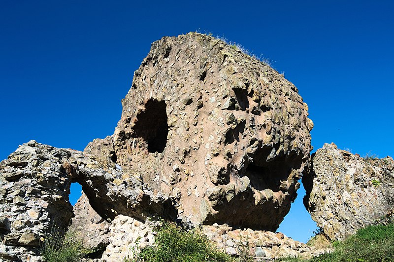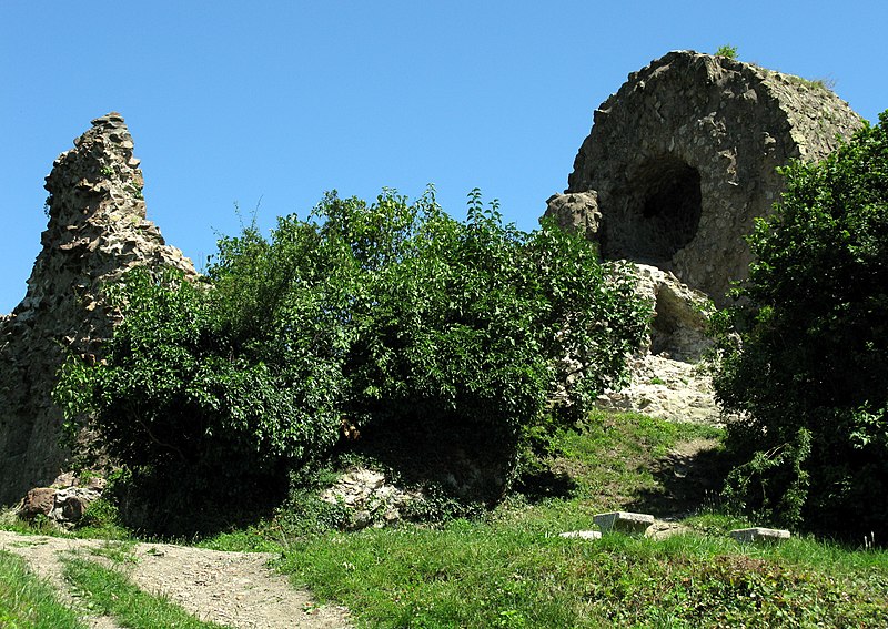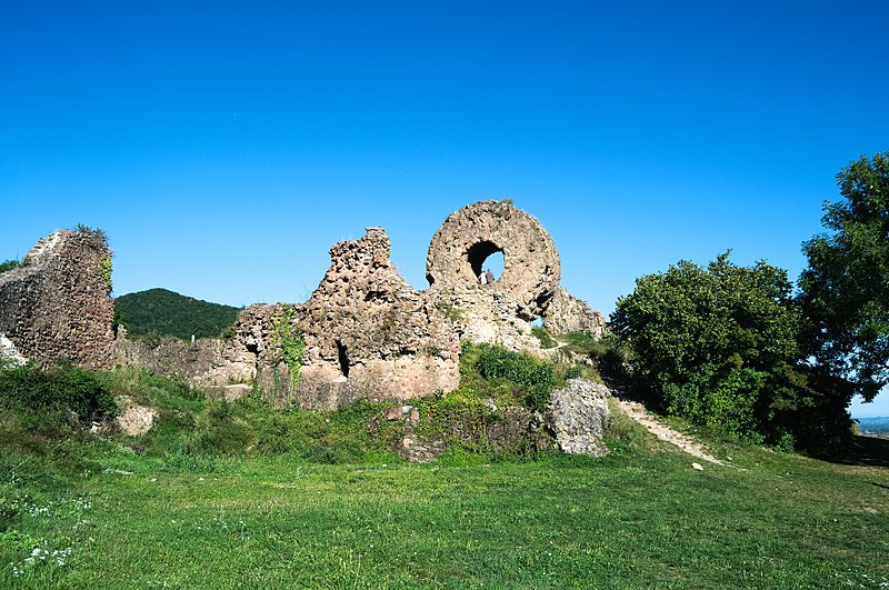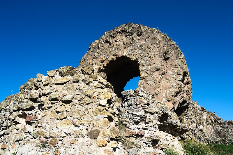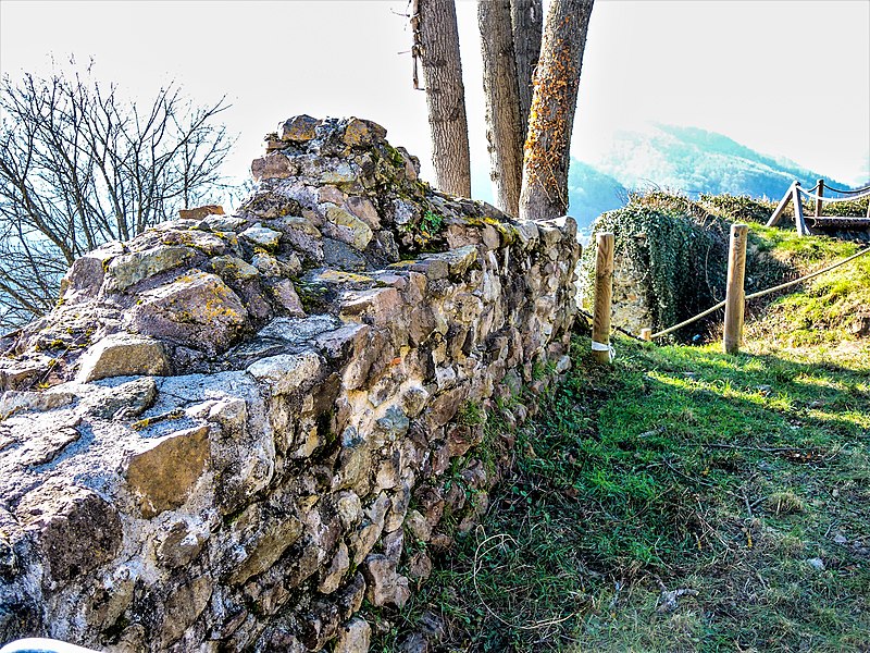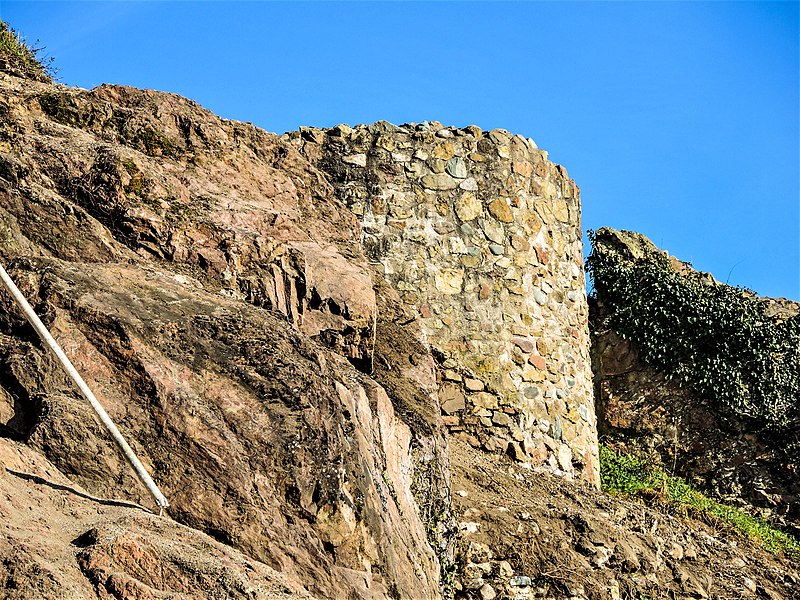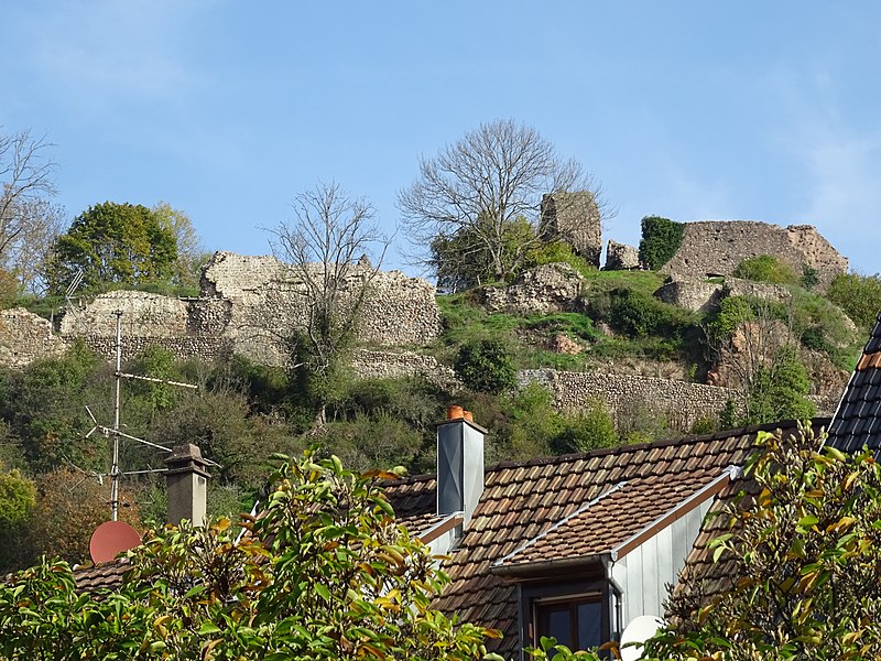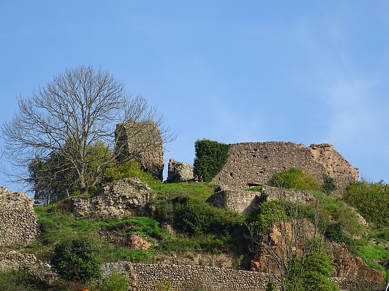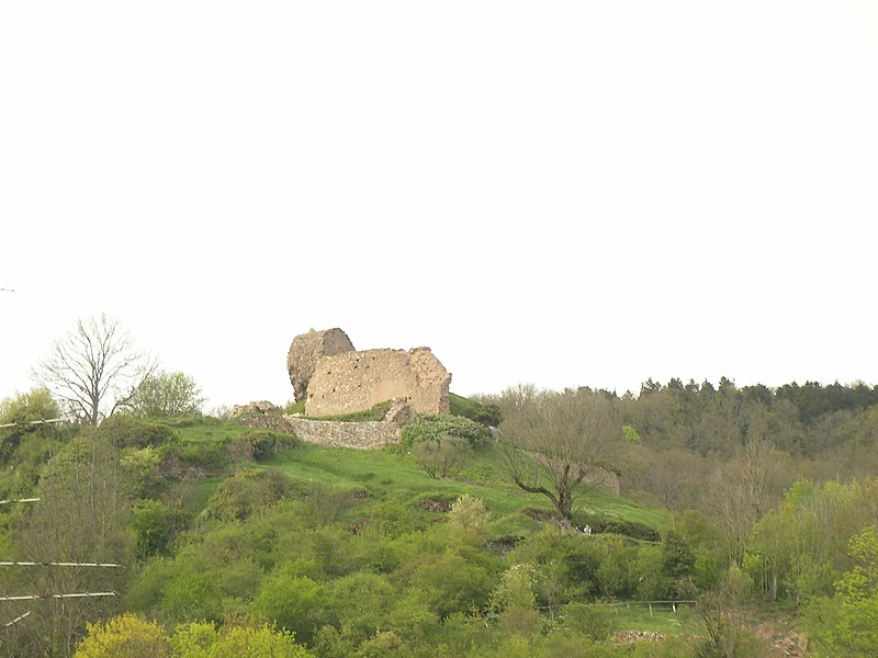 La forteresse, dans sa dernière extension, présentait un plan ovale d'environ 150 mètres de long sur 70 mètres de large, installé sur un petit mamelon à 445 mètres d'altitude et entouré d'enceintes étagées. Le cœur du site, avec son donjon et le logis attenant, remonte au XIIIe siècle ; le donjon circulaire, dit tour des Sorcières, sert de flanquement cylindrique et comporte de courtes archères et des bouches à feu ovales. Les vestiges mettent en évidence la qualité et la cohésion de certains mortiers employés à la fin du Moyen Âge, illustrée notamment par la persistance de l'« Œil de la Sorcière ».