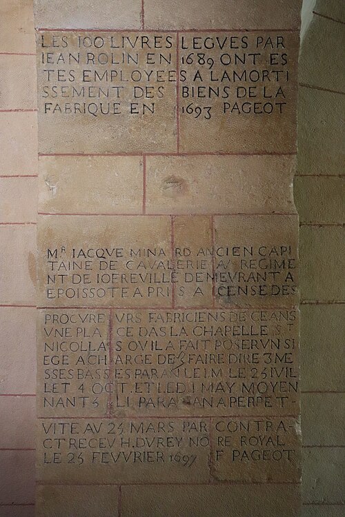 Le château d'Époisses, situé dans le village éponyme en Côte-d'Or, est une ancienne forteresse médiévale remaniée par ses propriétaires successifs et partiellement démolie pendant la Révolution française; il abrite encore aujourd'hui l'église paroissiale du village. Selon la tradition, il serait antérieur au VIe siècle et la reine Brunehaut y aurait souvent séjourné avec son petit-fils Thierry, jeune roi de Bourgogne. Transformé en maison seigneuriale au XIIe siècle, il passa aux familles de Montbard puis, de 1237 à 1421, aux Mello par le mariage d'Hélvise de Montbard avec Dreu de Mello. Philippe le Hardi y séjourna en 1377. À la mort de Claude de Bourgogne-Montaigu, Louis XI donna Époisses en apanage au maréchal de Bade-Hochberg; une part secondaire de la seigneurie revint aux d'Aumont, également descendants des Mello. Les propriétaires suivants apportèrent des modifications au château. Par la suite, Jacques de Savoie, duc de Nemours, en fut propriétaire avant de vendre le domaine en 1561, endetté, au maréchal Imbert de La Platière, qui transforma profondément la place forte et fit construire le porche de la tour qui porte aujourd'hui son nom. À sa mort sans enfant en 1567, le château revint à sa nièce Françoise de la Platière, épouse de Louis d'Ancienville. Entre 1591 et 1595, la Ligue s'empara du château, le pilla et fit édifier des fortifications supplémentaires que Louis d'Ancienville dut rembourser pour récupérer sa demeure. En janvier 1613, son château fut érigé en marquisat avec l'union de plusieurs terres alentours. Au XVIIe siècle, la petite-fille des Ancienville, Madeleine de La Grange d'Arquien, apporta Époisses à Guillaume de Guitaut par mariage; elle mourut en 1667 sans enfant mais transmit ses biens par fidéicommis via le prince de Condé, qui les restitua ensuite à Guillaume. Le prince de Condé fit bâtir, selon la tradition, un balcon sur la tour nord, aujourd'hui dite tour Condé. Guillaume de Guitaut, remarié à Antoinette-Élisabeth de Verthamon, transforma le château en résidence confortable et y reçut des contemporains illustres, parmi lesquels la marquise de Sévigné. La fin du XVIIe siècle marque l'apogée d'Époisses sous les Guitaut. Lors de la Révolution, les parties fortifiées furent jugées dangereuses et la partie sud du château fut détruite; toutes les tours furent ramenées à la hauteur des toits. Après la Révolution, la famille de Pechpeyrou-Comminges de Guitaut entreprit des travaux de restauration, borda la terrasse d'une balustrade, fit reconstruire les écuries et décorer plusieurs plafonds de salons. Le château est resté dans cette famille depuis lors; il est accessible au public pour la visite de l'extérieur toute l'année et pour l'intérieur en juillet-août. Le parc est inscrit et certaines parties du domaine ont été classées au titre des monuments historiques, notamment les douves, les ponts, les deux enceintes, le sol et les bâtiments compris entre elles, les dépendances, l'église et le château. À l'origine, le château se trouvait à l'écart du village et était protégé par une double enceinte; le village s'est ensuite développé entre ces deux lignes de fortification autour d'une abbatiale construite au XIIe siècle. Quatre tours protégeaient l'enceinte; le donjon, dit tour Brunehaut, date du XIIIe siècle et servait d'entrée au château, tandis que la tour Bourdillon repose sur les bases d'une tour du Xe siècle. La tour Bourdillon fut restaurée en 1560 par Imbert de La Platière. À l'époque moderne, le château comprenait un bâtiment principal flanqué de deux petites ailes et de grosses tours à base carrée, entouré d'un parc clos comportant des douves, des échauguettes et une double enceinte. Dans le parc se trouvent l'église devenue paroissiale, qui conserve une représentation murale du Dit des trois morts et des trois vifs, et un colombier du XVIIe siècle doté d'une échelle tournante et d'environ trois mille boulins. Le parc accueille également l'école privée Sainte-Louise. Les diverses vues et plans du site montrent la double enceinte fortifiée, les communs, la cour d'honneur, le colombier, les échauguettes et les parties arasées lors de la Révolution.