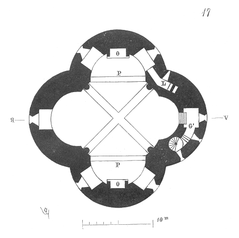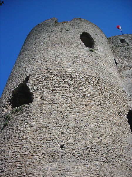 Le donjon, de plan quadrilobé en forme de trèfle, présente un diamètre extérieur de 72 m ; chaque lobe a un diamètre de 7 m et la hauteur atteint 36 m, avec un puits creusé au centre. Il s'élevait au centre d'une plateforme entourée d'une première enceinte carrée de 54 m de côté, flanquée de tours d'angle et accessible au sud-est par une porte avec pont-levis reliant le donjon. Une seconde enceinte de 90 m de côté protégeait une basse-cour où s'adossaient, au nord-est, la chapelle Saint-Laurent (36 m sur 18 m) et, au sud-ouest, un corps de logis ; la basse-cour comprenait aussi des logis, une galerie donnant sur la ville et des paneteries. L'ensemble défensif se prolongeait par une enceinte approximativement hexagonale, renforcée au sud par une batterie rectangulaire défendue par trois tours, percée de deux portes munies de ponts-levis et complétée par un fossé ; la forte déclivité du terrain accentuait l'aspect en terrasses successives des trois enceintes.