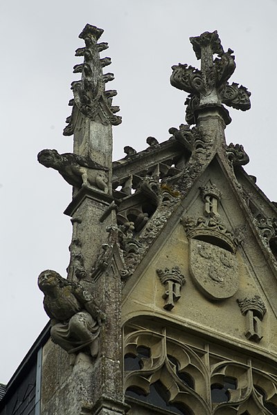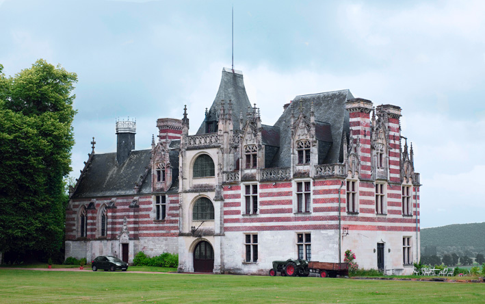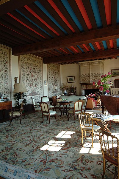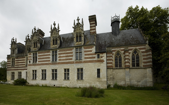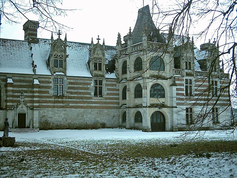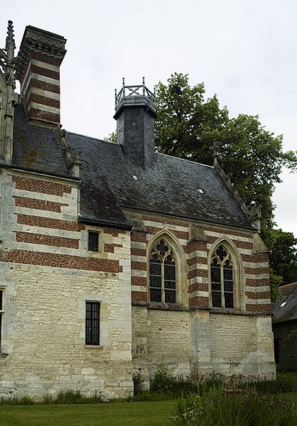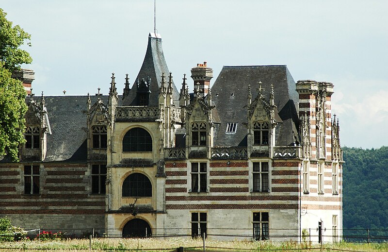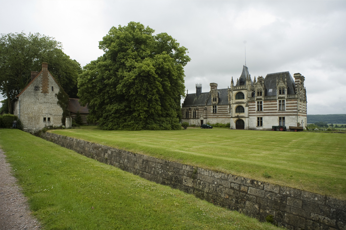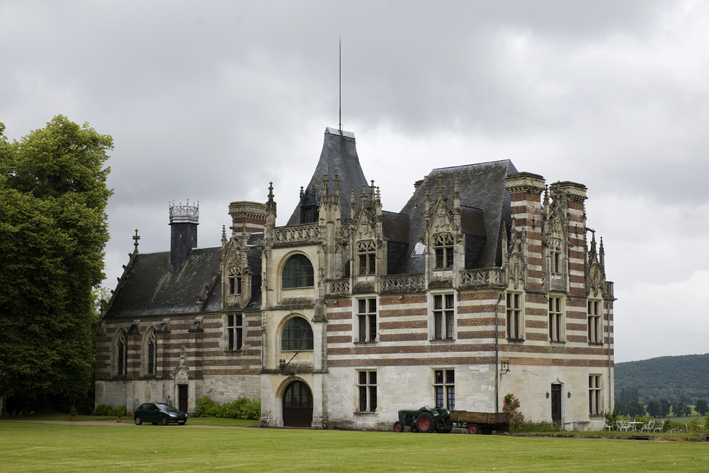 Le château d'Ételan, demeure de la fin du XVe siècle de style gothique flamboyant, se situe à Saint-Maurice-d'Ételan, en Seine-Maritime, en Normandie. Construit à partir de 1494 pour Louis Picard sur l'emplacement d'un ancien château fort, il a fait l'objet d'importantes restaurations au XIXe siècle et après des dommages au XXe siècle. La chapelle Sainte-Madeleine, édifiée entre 1495 et 1515, a été entièrement restaurée, notamment pour ses lambris et ses peintures murales. Les terrasses du domaine dominent la Seine. Le premier château, appartenant à Pierre Picart d'Ételan et détruit pendant la guerre de Cent Ans, avait précédemment occupé le site. En 1494, Louis Picart d'Ételan reçut 700 livres du duc d'Orléans pour reconstruire sa maison ; le logis et la chapelle datent de cette campagne. Le portail et la ferme datent du XVIIe siècle, plusieurs bâtiments agricoles ont été ajoutés au XVIIIe siècle, et en 1772 Joseph Belhomme surmonta la cage d'escalier d'un étage, visible sur d'anciennes gravures. Au XIXe siècle, madame de Bois-Hébert restaura le logis, supprima la construction de 1772 et restitua la couverture et les lucarnes ; l'architecte Simon, avant 1893, mena une importante campagne de restauration et construisit un ouvrage d'entrée pour madame Auguste Desgenetais. La partie centrale du logis, détruite par un incendie en 1944, fut restaurée en 1968. Propriété privée, le château est inscrit au titre des monuments historiques depuis 1941 et l'ancien domaine constitue un site naturel classé. Il est implanté sur la rive droite de la Seine, entre les ponts de Brotonne et de Tancarville, au sein du parc naturel régional des Boucles de la Seine Normande. Une plaque de marbre présente la liste des propriétaires depuis 1383 ; Guillaume Picard fit construire une maison campagnarde entre 1468 et 1475. Le château passa successivement aux maréchaux de Brissac, à la famille d'Épinay de Saint-Luc, à Charles Hénault puis à son fils Jean-François Hénault, avant d'être transmis aux familles Belhomme de Glatigny, au marquis de Martainville, aux Deschamps de Boishébert, à Auguste Desgenétais, puis aux Castelbajac et Charbonnière. Restauré au XIXe siècle, il fut incendié en novembre 1940 par une compagnie à cheval des troupes allemandes et réquisitionné en 1943 pour accueillir des enfants du Havre ; des campagnes de restauration se sont poursuivies entre 1961 et 1975 sous la propriété de Georges Petit, puis à partir de 1978 sous celle de Jacques Boudier. Après plus de trente années de travaux, le château et sa chapelle retrouvèrent leur splendeur en 1994, à l'occasion du 500e anniversaire de la construction. Trois tilleuls multi-centenaires du parc ont été classés « arbres remarquables » en 2010. De nombreux personnages historiques y séjournèrent ou y passèrent, parmi lesquels Catherine de Médicis et le roi Charles IX en 1563, Louis XI, François Ier, Voltaire et le compositeur André Caplet. De la construction médiévale subsistent une cave, un mur d'enceinte et la maison des gardes datée de 1350. Le château, contemporain d'édifices rouennais comme le Palais de Justice et l'hôtel de Bourgtheroulde, est composé de deux corps de logis en pierre et brique alternées reliés par une galerie d'escalier en pierre de la première Renaissance et il est entouré d’un parc de vingt hectares. La chapelle, intégrée au bâtiment principal et dédiée à sainte Madeleine, est considérée comme le joyau de l'ensemble ; l'abbé Cochet la comparait à celles des châteaux de Blois ou d'Amboise. Elle réunit vitraux, fresques et statues polychromes de la première Renaissance normande et abrite un bénitier du XVIe siècle, une piscine du XVIIe siècle et des boiseries de style troubadour. Classée monument historique, la chapelle fit l'objet d'une restauration conduite par l'État, le Département, les Amis du château et les propriétaires, achevée en 1994. Les armoiries liées au lieu incluent celles des Picard d'Estelan et de Radeval, ainsi que des variantes signalées du blason Picard d'Estelan et du Picard de Radeval. La toponymie du lieu remonte à Esteilant (1050-1066) et associe l'élément germanique et norrois land au vieil anglais stēġili, témoignant de l'ancienneté et de la diversité des influences toponymiques en Normandie. Parmi les parties remarquables du château figurent l'antichambre de la reine, le grand salon et les façades est et ouest.