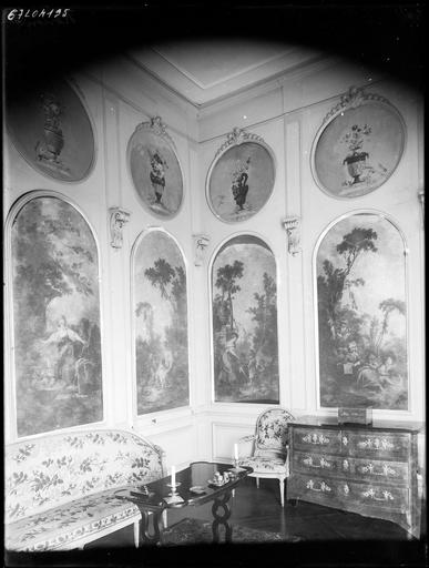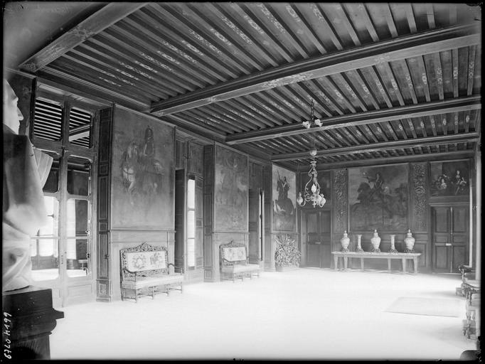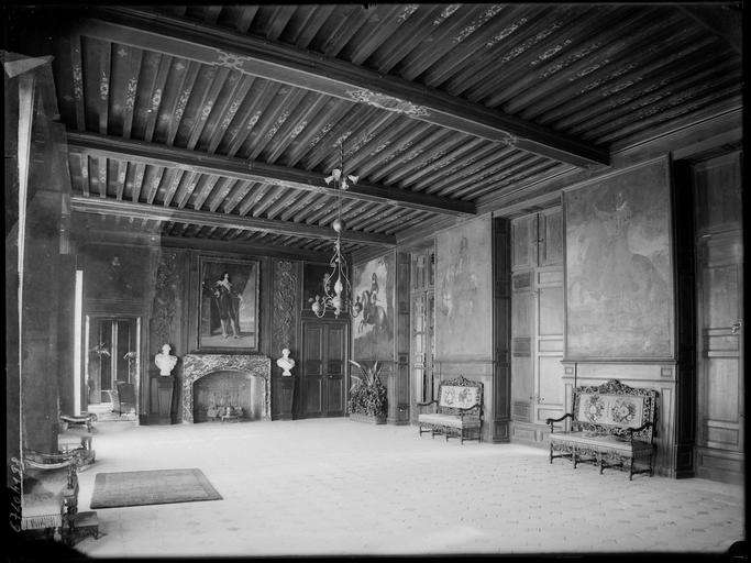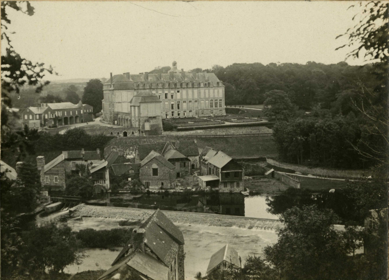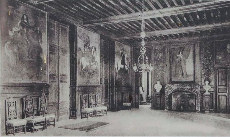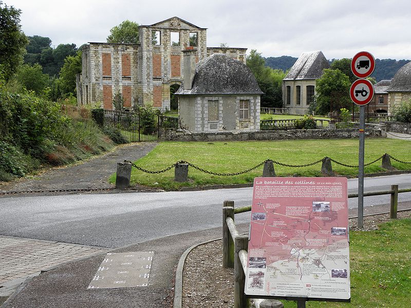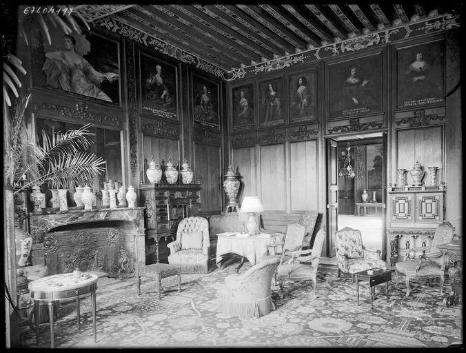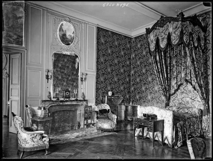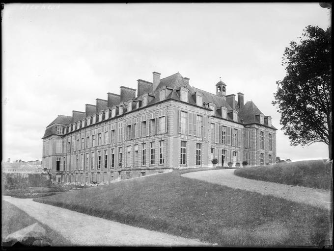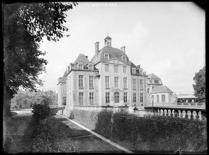 En août 1944 le château est incendié par les troupes allemandes lors de leur retraite; il ne sera pas reconstruit, à l'exception de la chapelle. Avant sa destruction, le monument, bâti en 1635 et agrandi au XVIIIe siècle, abritait un vaste vestibule dallé de marbre, un escalier principal en pierre à rampe en fer forgé, et de riches appartements décorés de boiseries et de portraits familiaux. Parmi les pièces remarquables figuraient la salle des Maréchaux, le salon des dames d'Harcourt, le salon des gouverneurs, la salle à manger ornée de dessus‑de‑porte représentant le domaine, des boudoirs laqués contenant notamment deux portraits par Fragonard, et la chambre où dormit Louis XVI, tendue de toile de Jouy. L'escalier du premier étage était décoré de huit grands tableaux relatant l'histoire de Joseph; huit peintures cintrées du XVIIIe siècle, surmontées de médaillons floraux, ont échappé à l'incendie et furent exposées dans les années 1970 au château du Champ‑de‑Bataille.