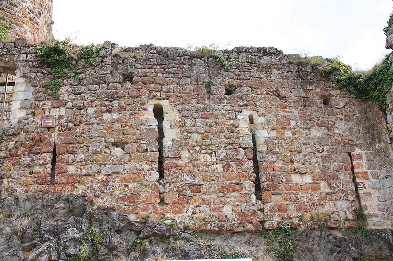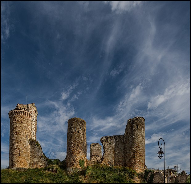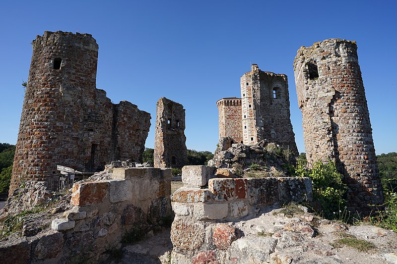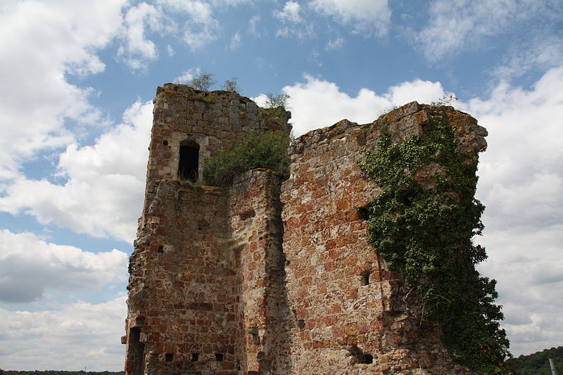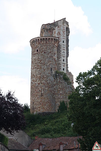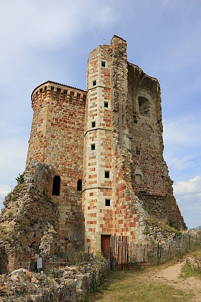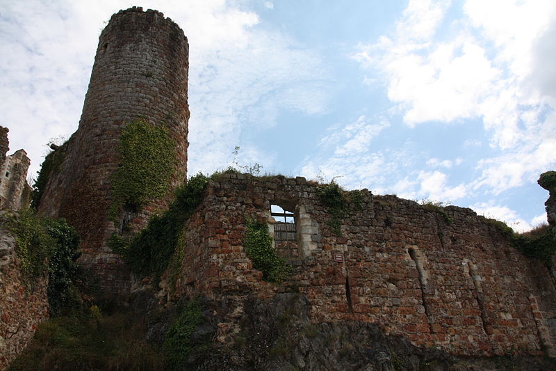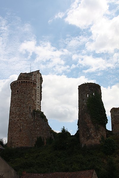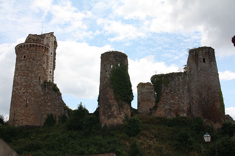 Aujourd'hui ne subsistent que des vestiges sur un plateau de 90 m sur 35 m dominant une terrasse intermédiaire qui formait la basse-cour ; ces ensembles conservent une grande part de leurs enceintes flanquées de tours cylindriques, dont quatre conservent encore une élévation importante. À l'extrémité nord du château haut se dressent les restes d'un donjon carré du XIVe siècle, couronné de mâchicoulis, dont ne subsistent que deux pans ; les logis s'alignaient le long des courtines, et certaines archères atteignent 2,50 m de haut. Une vaste basse-cour complétait l'ensemble et le bourg, bâti au pied du promontoire, possédait aussi une enceinte notablement conservée. La construction fait appel à un grès à dominante rose, parfois ferrugineux, visible dans les maçonneries subsistantes. Les descriptions anciennes décrivent un château composé de plusieurs tours, d'un donjon avec chambres et chapelle et d'ouvrages défensifs comme ravelin, pont-levis et mâchicoulis ; l'état actuel permet d'en percevoir encore la configuration et l'importance défensive. Une association locale conduit des chantiers de restauration et de sauvegarde afin de maintenir et de mettre en valeur ces vestiges.