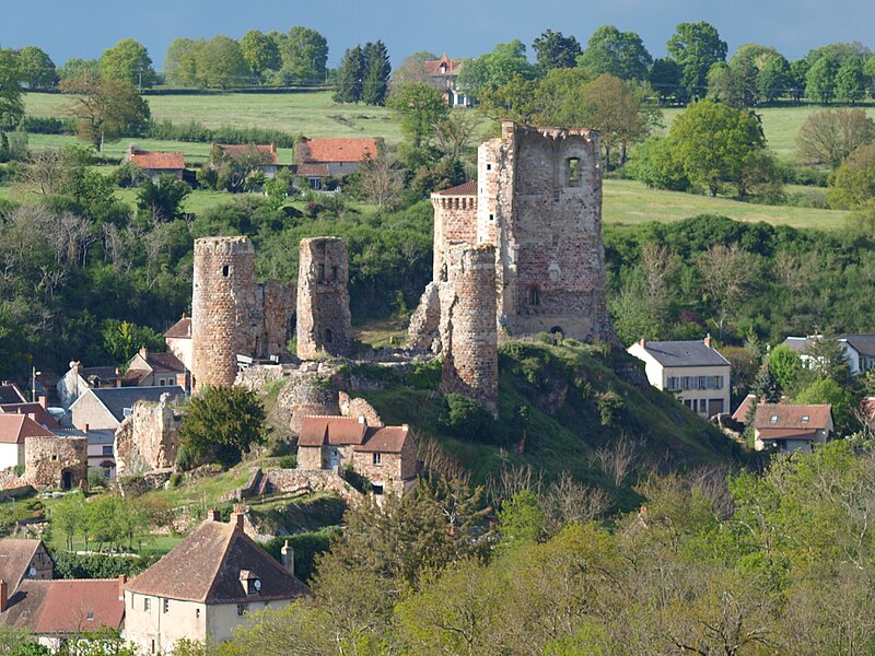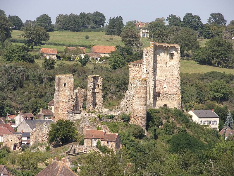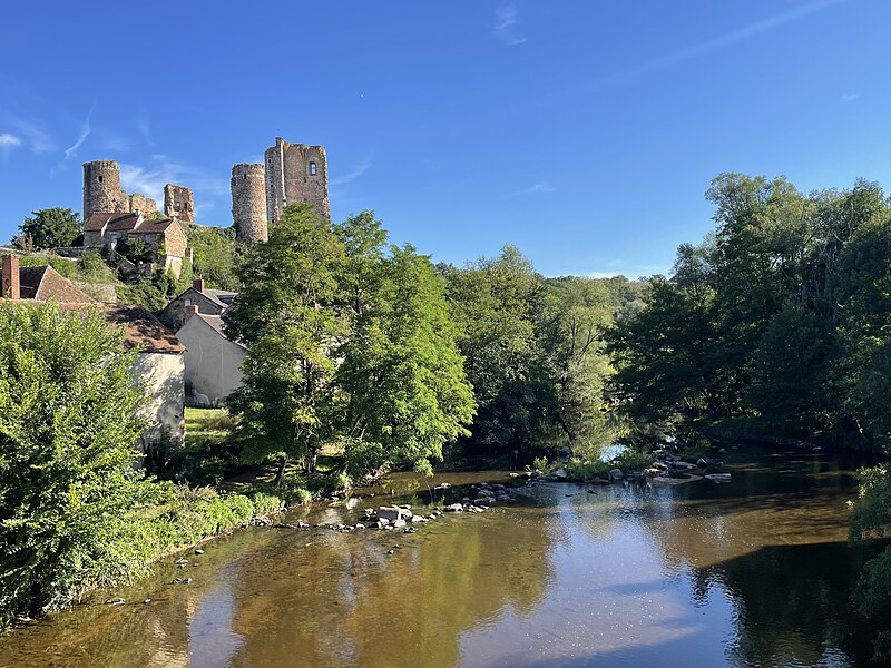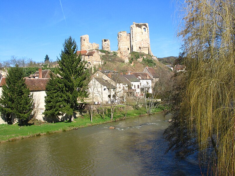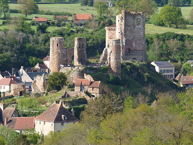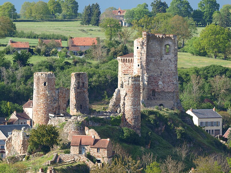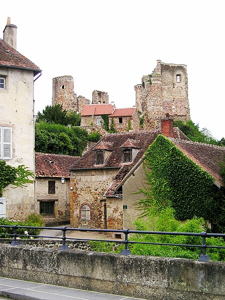 Le site des ruines du château d'Hérisson occupe une butte rocheuse dans un large méandre de l'Aumance, sur la commune d'Hérisson, au nord de Montluçon, dans le département de l'Allier. Il semble avoir été fortifié dès l'invasion wisigothique ; un premier château, commencé en 989 et achevé au XIe siècle, comportait un donjon carré et une seconde tour plus petite. Dès le XIe siècle, le fief appartenait aux sires de Bourbon, sous la suzeraineté des comtes de Champagne, et le château contrôlait un gué et un carrefour de voies anciennes. Au XIIe siècle, la place servait de refuge à des pillards ; au XIIIe siècle elle devient le siège d'une châtellenie. Au XIVe siècle, le château primitif est remplacé et ses défenses renforcées, notamment par la mise en place de nouvelles fortifications ; l'ensemble faisait partie des châtellenies des ducs de Bourbon, qui y gouvernaient la partie occidentale de leur duché. Au XVIe siècle, Anne de France y habita. Pendant la Fronde, les partisans du prince de Condé s'en emparèrent puis il fut repris par le comte de Saint-Géran ; sur l'ordre de Mazarin il fut démantelé à partir de 1652 et il servit ensuite de carrière de pierre pour les habitants. Le château passa ensuite entre plusieurs mains privées, dont la famille de Condé, le duc d'Aumale, Pierre Simon de Dreux-Brézé, Maurice d'Irisson et Louis Bignon ; au milieu du XXe siècle il appartenait au Touring Club de France, puis, après la liquidation de cette association, il fut acquis en 1983 par la commune d'Hérisson. En 2006, la ville a confié par bail emphytéotique la restauration et l'entretien à l'association « Sauvegarde du Château féodal d'Hérisson » (S.C.H.), qui intervient sous le contrôle de l'architecte en chef des Monuments historiques. Une médaille du château figure sur la coquille de l'épée de l'académicien Gaston Leduc, natif d'Hérisson et élu à l'Institut en 1967. Les ruines sont classées au titre des Monuments historiques par arrêté du 16 décembre 1986.