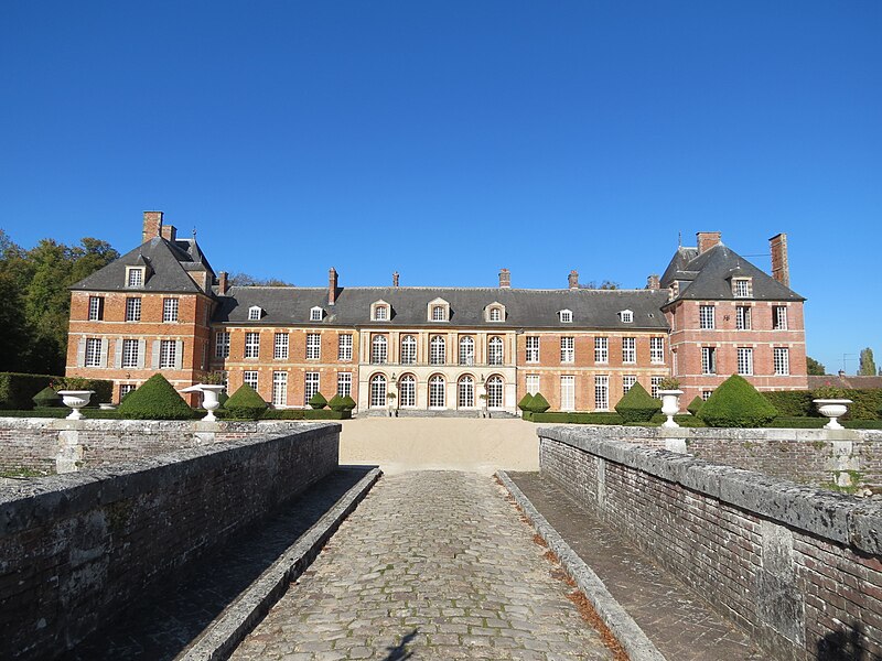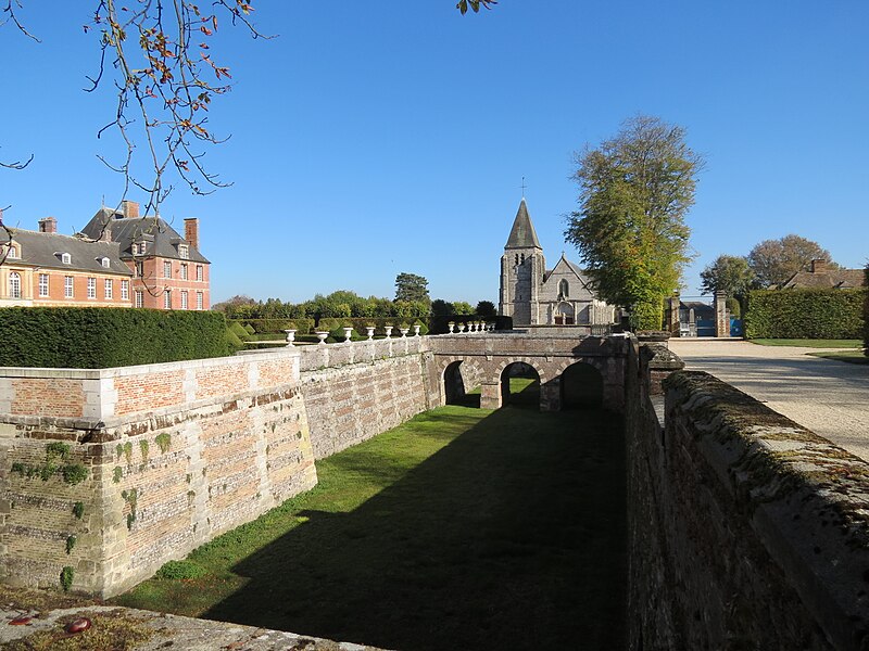 Le château d'Heudicourt, demeure datant du XVIe siècle, se situe sur la commune d'Heudicourt, près de l'église Saint-Sulpice, dans le département de l'Eure en Normandie, et est classé au titre des monuments historiques. Selon la tradition, un rendez-vous de chasse existait à cet emplacement dès l'époque de Dagobert. Le domaine avait été acquis en 1574 par la famille Sublet, originaire de Blois ; Claude Sublet fit édifier, dans la première moitié du XVIIe siècle, des pavillons latéraux sur la façade nord, et son fils Michel poursuivit les travaux en doublant les pavillons au sud et en insérant le corps de logis entre eux. Le château fut achevé par Michel Sublet vers 1660 ; il mourut en 1665. La propriété resta dans la même famille : Michel Sublet, titré marquis d'Heudicourt, puis Pons Auguste, puis Alexandrine de Belzunce, qui fut dame de compagnie de Madame Adélaïde et céda le domaine en 1798 à quatre notables parisiens après que la Révolution eut fait du château une prison. En 1804, les acquéreurs vendirent la propriété à Martin-Roch-Xavier Estève, trésorier du Gouvernement, qui releva les douves et le pont d'entrée et fit abaisser les ailes latérales en ruine ; il fit bâtir un avant-corps de style néoclassique et le château conserva depuis lors un aspect transformé par ces interventions. Estève fut fait comte de l'Empire en 1809 ; après une querelle avec l'Empereur en 1811, il se retira dans ses terres d'Heudicourt. La famille Estève demeure actuellement propriétaire du domaine. À l'origine, l'ensemble comprenait quatre corps de bâtiments disposés autour de la cour d'honneur, cantonnés de pavillons carrés et isolés par de profondes douves sèches ; aujourd'hui ne subsiste que le corps de logis principal, rebâti au XVIIIe siècle, avec l'avant-corps néoclassique réalisé par le comte Estève. Le château est construit en briques et pierre, avec des toitures d'ardoise. L'édifice, la cour d'honneur, les douves et les jardins sont classés au titre des monuments historiques par arrêté du 17 octobre 1966. Le parc de quatorze hectares, d'inspiration classique, a été conçu à la fin du XVIIe siècle avec bosquets, allées en étoile, théâtre de verdure et perspectives protégées par des sauts-de-loup ; au XIXe siècle y fut ajouté un jardin de plantes médicinales destiné à la pharmacie du château. La tempête de 1999 détruisit les alignements anciens et de grands cèdres ; ces plantations ont été reconstituées par la mise en place de plusieurs centaines d'arbres et d'essences diverses.
