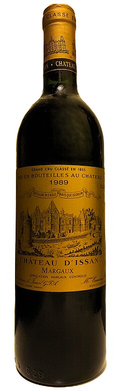 Le château d'Issan, situé à Cantenac en Gironde, est un domaine viticole produisant un Margaux classé troisième grand cru dans la classification de 1855. L'édifice repose sur les soubassements du château-fort de la Mothe de Cantenac et présente un plan quadrangulaire entouré d'eau par des douves. Les angles sont renforcés par des tourelles rondes, dont deux ont été abaissées au XVIIe siècle. Sur un côté, un châtelet d'entrée est protégé par deux tours rondes surbaissées; de l'autre, les douves sont franchies par un pont de pierre datant du XVe siècle. La façade principale comporte un pavillon central carré de deux étages, couronné de balustres sur une corniche à consoles, et un porche flanqué de deux colonnes rondes à chapiteaux corinthiens. L'intérieur conserve des cheminées de style Renaissance. Selon la légende, le vin du domaine aurait été servi lors du mariage d'Aliénor d'Aquitaine avec Henri Plantagenêt le 11 mai 1152. Au XIXe siècle, le vin du château est également servi à la cour de l'empereur François-Joseph à Vienne, ce qui a inspiré la devise du domaine : Regium mensis aris que deorum (« Pour la table des Rois et l'autel des Dieux »). Au XVIIe siècle, la famille du parlementaire bordelais d'Essenault fit raser le château médiéval et édifier le château actuel sur la plateforme ainsi arasée. Le domaine est acquis par la famille Blanchy en 1851, puis par la famille Roy en 1865, laquelle dote la propriété de chais et d'un cuvier. Château d'Issan figure au classement des Grands crus de 1855. La famille Cruse devient propriétaire après l'achat réalisé en 1945 par Emmanuel Cruse I, qui l'ajoute aux autres propriétés familiales telles que Pontet-Canet et Le Taillan. Lionel Cruse dirige ensuite le domaine jusqu'à sa retraite en 1998, date à laquelle il cède la direction à son fils Emmanuel Cruse II. En 2013, le millionnaire Jacky Lorenzetti entre au capital en tant que copropriétaire. Les façades et les toitures du château, ainsi que plusieurs éléments intérieurs, notamment la cheminée de la salle de Justice et celle de la salle à manger, sont inscrits au titre des monuments historiques depuis le 16 juin 1970. Le vignoble couvre 120 hectares sur des sols de graves et de gravelo-argile et est planté pour 65 % de cabernet sauvignon et 35 % de merlot noir. L'élevage se fait en barriques, dont la moitié sont neuves, et le premier vin Château d'Issan représente une production annuelle d'environ 180 000 bouteilles. Le domaine produit également un second vin, Blason d'Issan, et vinifie le château de Candale (Haut-Médoc) ainsi que le Moulin d'Issan (Bordeaux supérieur), cette dernière production atteignant environ 70 000 bouteilles par an.