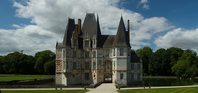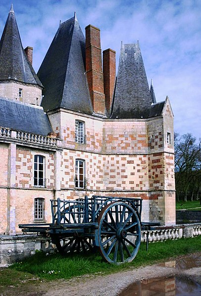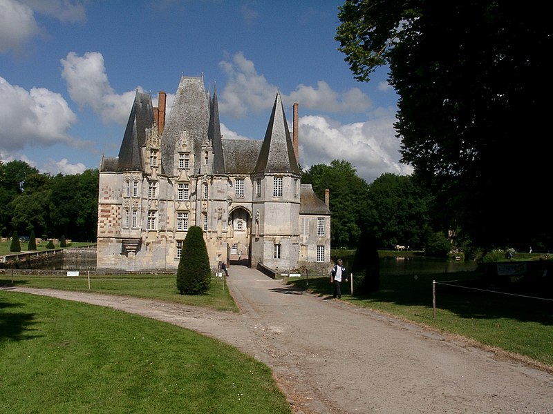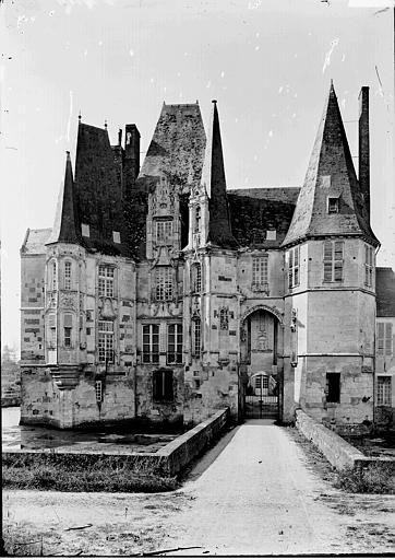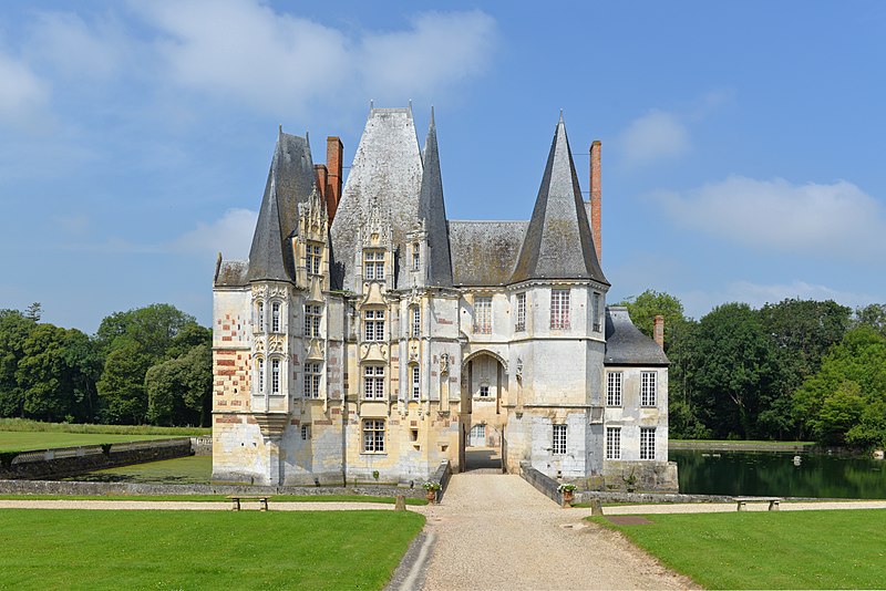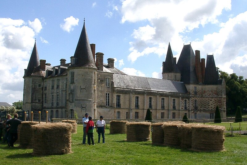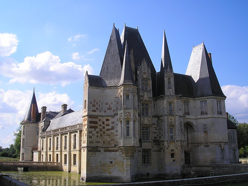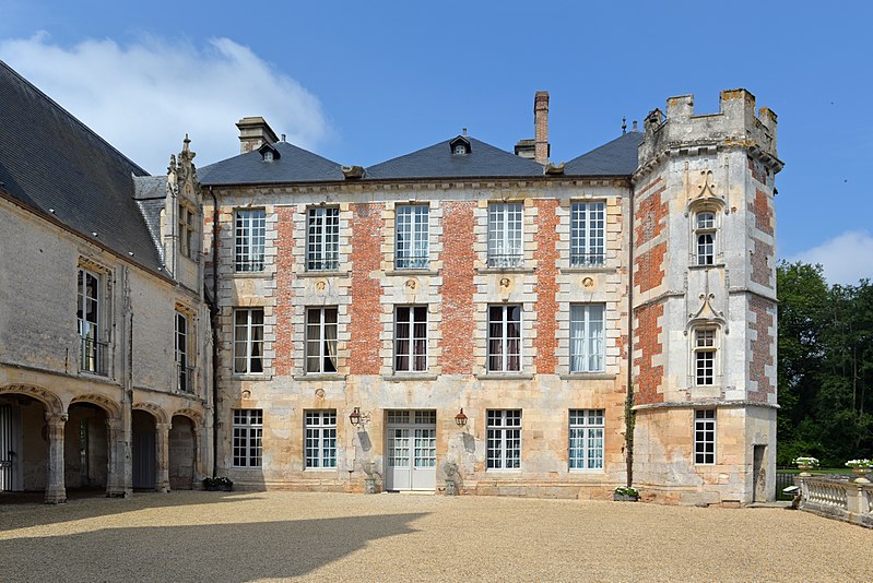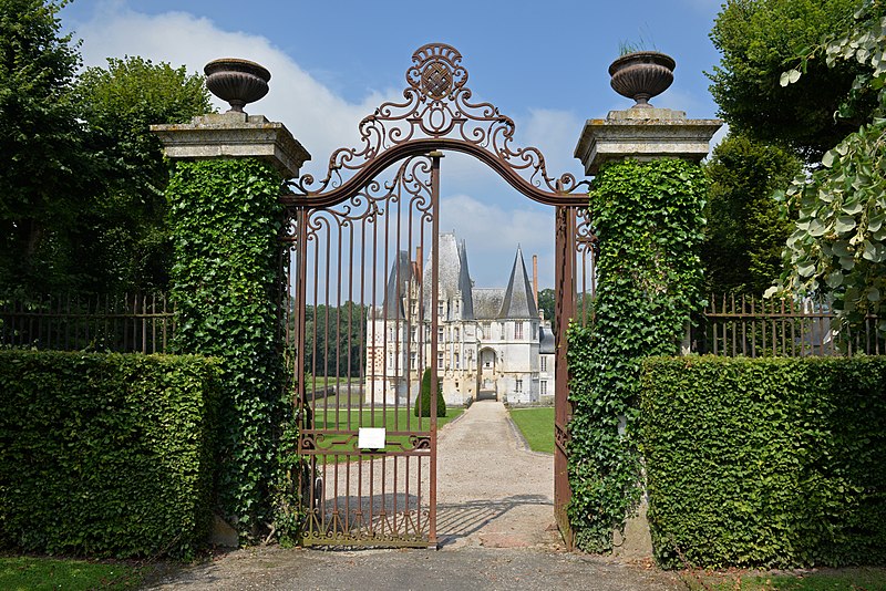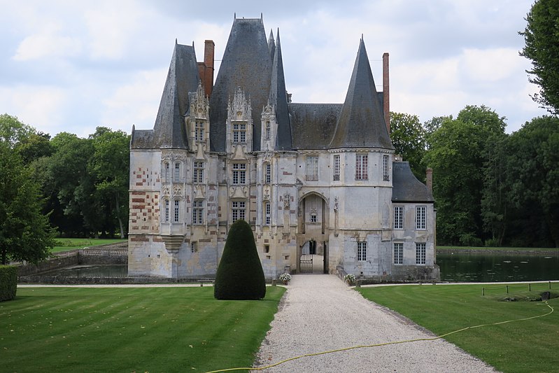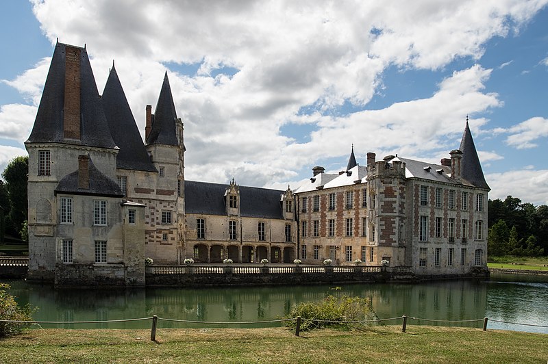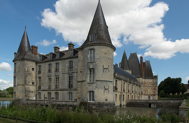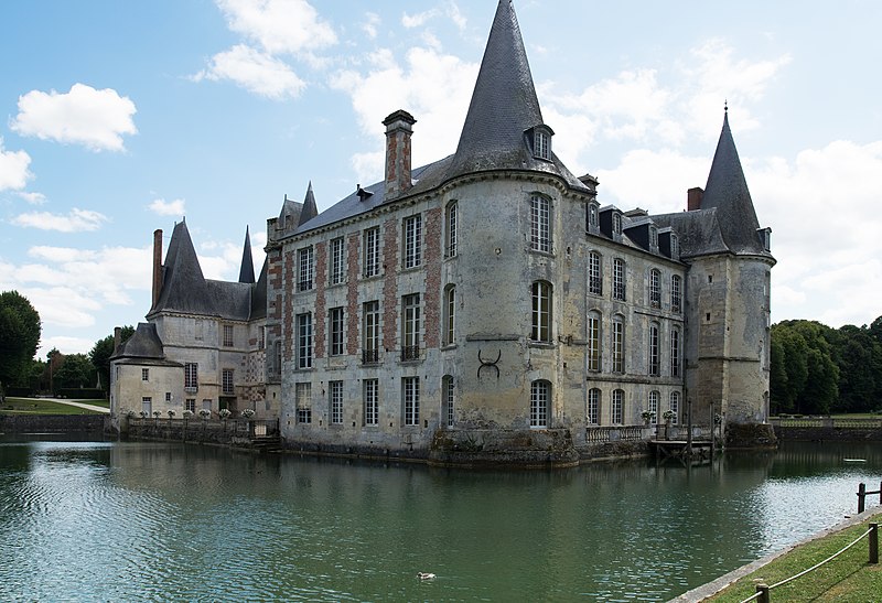 Le château ; le pigeonnier ; la vasque ; les façades et toitures du bâtiment parallèle au château (cad. AD 28, 29, 43, 44) : classement par arrêté du 17 septembre 1964 - La chapelle ; les façades et toitures du bâtiment de l'orangerie (cad. AD 24, 28) : inscription par arrêté du 17 septembre 1964 - Les façades et toitures des bâtiments de la ferme du château (cad. AD 27, 43, 44) : inscription par arrêté du 29 août 1977 - Le parc du château, tel qu'il est délimité sur le plan annexé à l'arrêté, et comprenant : les murs de clôture ; les portails et leurs grilles ; les avenues ; les parterres de gazon ; les jardins fruitiers et potagers et leurs murs ; le système hydraulique comprenant la rivière, les canaux et leurs ponts ; les sauts-de-loup ; les douves et leurs ponts ; l'étang et son île ; le bief du moulin avec ses vannes ; les façades et les toitures du moulin, de la maison du pont et de la charretterie (cad. BC 114, 115 ; YA 126, 131 à 136, 140 à 146, 148 à 166, 169, 170, 174, 175 ; YP 26, 27) : inscription par arrêté du 22 mai 2002