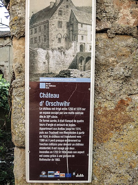 Le château d'Orschwihr, ancien château fort, est un domaine viticole situé à Orschwihr (Haut-Rhin, Grand Est) et inscrit au titre des monuments historiques depuis le 2 novembre 1988. Le logis principal date d'environ 1230-1250. Le dernier étage du logis, le mur d'enceinte extérieur pourvu de tours à canonnières et un corps de bâtiment en aile sont datés de 1580 (XVIe siècle). On observe des marques de tâcherons sur les maçonneries. Le château a été incendié en 1722, partiellement reconstruit après cet incendie, puis victime d'un nouvel incendie en 1934. Les vestiges actuels succèdent à un manoir du XVe siècle. La seigneurie passa des Andlau (jusqu'en 1524) à noble Jean de Rixheim, puis aux nobles d'Erdmannsdorf et, par mariage, aux Truchsess de Rheinfelden. C'est au XVIe siècle que le manoir agricole fut transformé en château. Après sa restauration au XVIIIe siècle, il appartint notamment à la famille Griset puis à François Willemann, conseiller à la Chambre des Comptes des évêques de Strasbourg, qui renonça à certains droits en faveur de son seigneur. Vendu comme bien national pendant la Révolution, le château et ses dépendances furent convertis en exploitation agricole. Aujourd'hui ne subsistent que l'exploitation viticole qui ceinture les anciennes fortifications, les restes de deux tours et un pont en pierre sur le fossé. Le village d'Orschwihr a été essentiellement vigneron dès l'origine, tirant parti des collines bien exposées du Bollenberg et du Pfingtberg. Cette prospérité se voit dans les nombreuses maisons vigneronnes des XVIe et XVIIIe siècles, surtout dans la partie basse du village, tandis que le haut était occupé par ouvriers et petits vignerons. Au Moyen Âge, les vignes du Lippelsberg et les impositions de la cour domaniale constituaient une ressource pour l'administration de Rouffach. Aujourd'hui le vignoble reste central : 214 ha de vignes couvrent près de la moitié de la surface agricole du village. Le cadastre de 1828 comptait 396 propriétaires ; en 1980, sur 363 ha de surface agricole utilisée, 69 ha étaient consacrés aux céréales et le reste au vignoble ; le nombre de viticulteurs s'établit à 40, dont 34 commercialisent leur production. Le domaine viticole du château appartient actuellement à Hubert Hartmann, qui y cultive notamment le riesling. Le grand cru Pfingstberg donne des vins amples, généreux et capiteux, avec des notes minérales et d'agrumes, tandis que le grand cru Rangen exprime amplitude, richesse et arômes de fruits blancs évoluant vers des notes fumées et de pain grillé. Les crus du domaine figurent sur les cartes de vins de huit restaurants en Belgique (dont deux étoilés au Guide Michelin), de huit restaurants étoilés en Grande-Bretagne, de sept restaurants aux Pays-Bas (dont cinq étoilés au Michelin), de dix-huit restaurants aux États-Unis (neuf à New York), ainsi que de deux restaurants à Moscou et d'un à Tokyo. La production est citée dans La Revue du vin de France, le Guide Hachette des Vins, The Wine Advocate, The New York Times, The Plain Dealer et The Prague Tribune, et ses vins ont été primés aux Vinalies internationales.