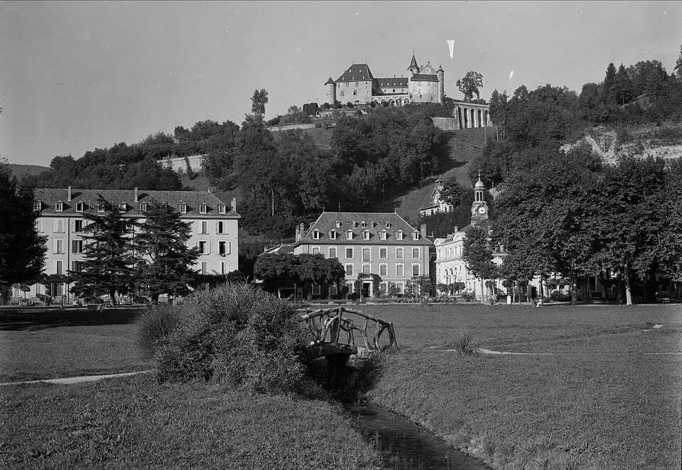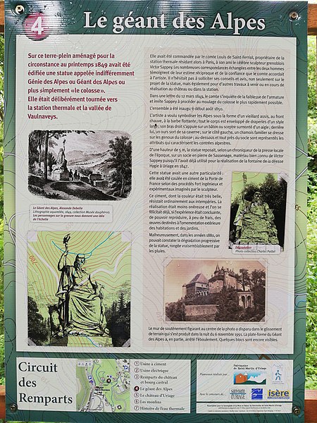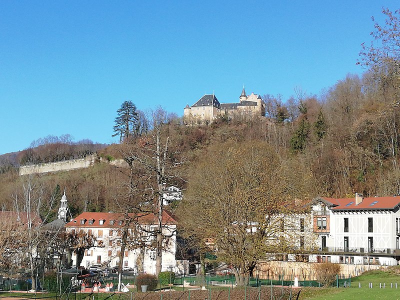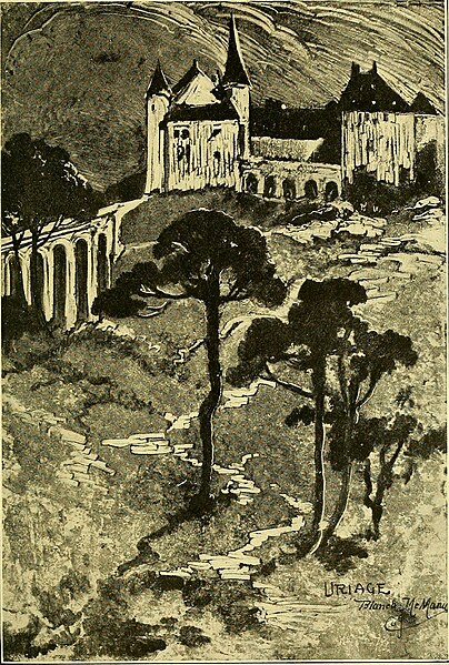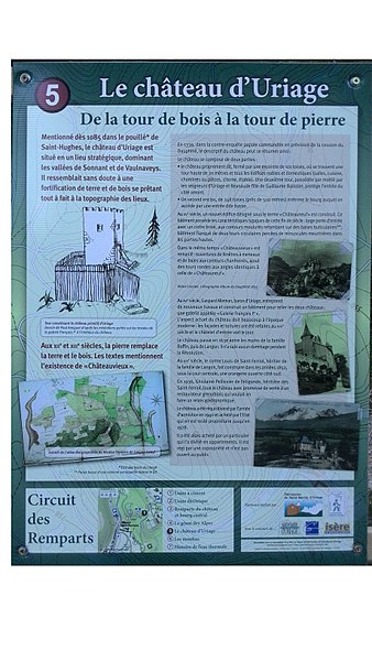 Le château d'Uriage, ancien château fort fortement remanié aux XVe et XIXe siècles, se dresse sur la commune de Saint-Martin-d'Uriage, dans l'Isère, en région Auvergne-Rhône-Alpes. Il occupe le sommet d'une colline dominant la vallée, la station thermale d'Uriage-les-Bains et le massif de Chamrousse. La première mention connue du site remonte à 1085, où il est décrit comme une « tour de bois » ou motte castrale. Appartenant à la famille dauphinoise des Alleman, la tour de bois a ensuite été remplacée par une construction en pierre. En 1496, sous Soffrey Alleman, la seigneurie d'Uriage est érigée en baronnie par le roi Charles VIII. Le château passe en 1630 à Thomas Boffin, puis en 1659 à la famille Langon par mariage; Nicolas-François de Langon fut député aux États généraux de 1789. En 1797, il entre par mariage dans la famille de Gauteron, puis Louis de Saint-Ferriol hérite de sa tante, la marquise Madeleine Françoise de Gauteron, de plusieurs châteaux dont celui d'Uriage. Réquisitionné par l'armée en 1942, le domaine a accueilli successivement trois « écoles de cadres » sous le régime de Vichy. Vendu par l'armée en 1968 à un particulier, il est aujourd'hui une propriété privée fermée à la visite. Les archives du château sont conservées aux Archives départementales de l'Isère. Le bâti s'organise autour d'une cour carrée et comprend trois corps de logis massifs, flanqués de tours rondes aux angles; la plus imposante joue le rôle de donjon. Il subsiste probablement des éléments anciens liés à l'édification par les Alleman, mais la majeure partie des structures appartient aux remaniements des XVe et XIXe siècles. La documentation et l'iconographie du site incluent cartes postales anciennes, vues des façades et panneaux d'information sur l'histoire, les remparts, les anciens moulins et le parcours pédestre. Plusieurs éléments du château et de ses abords sont protégés au titre des monuments historiques, avec une inscription partielle datant du 14 septembre 1988, puis une inscription concernant les façades et toitures et l'orangerie le 6 février 1990. À usage de copropriété privée, le château n'est pas accessible en visite libre, mais il ouvre au public deux jours par an à l'occasion des Journées européennes du patrimoine, lors de visites organisées par l'office de tourisme d'Uriage et l'Association pour la sauvegarde et la mise en valeur du patrimoine de Saint-Martin-d'Uriage.