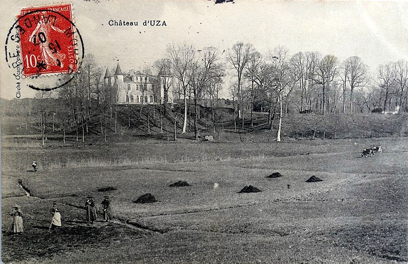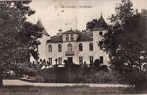 Le château d'Uza, situé sur la commune d'Uza dans le département des Landes, est inscrit au titre des monuments historiques depuis le 3 mai 2004. Il occupe le sommet d'une motte castrale (tuc en gascon) qui portait au Moyen Âge une forteresse édifiée pour la puissante famille de Montferrand. En 1472, Isabeau de Montferrand épouse Pierre de Lur, puis en 1586 Jean de Lur épouse Charlotte Catherine de Saluces, héritière du dernier marquis de Saluces, liant ainsi les noms des deux familles à Uza. La famille de Lur-Saluces hérite de la forteresse primitive et la remplace par une grande demeure aux XVIIe et XIXe siècles, avant un remaniement important en 1929. En 1929, l'architecte Jean Prunetti, appelé par le marquis Bertrand de Lur-Saluce, modernise l'édifice tout en conservant le plan ancien : l'ensemble, de plan quadrangulaire cantonné de tours, prend un étage et un pavillon central. L'architecte supprime les anciennes toitures à croupes ou coniques au profit d'une terrasse unique et relie les tours entre elles par une galerie au rez-de-chaussée qui soutient un large balcon à l'étage noble. Le pavillon central est rattaché aux tours par des loggias appuyées sur des paires de colonnes cannelées, conférant à l'ensemble une apparence de villa médicéenne toscane. Les décors intérieurs sont pour l'essentiel conservés ; on y remarque un mélange des tendances décoratives des années 1920-1930 et d'un mobilier plus ancien. Le parc semble avoir été redessiné vers 1930 sur la base d'éléments paysagers antérieurs. Le château est également représenté sous sa forme médiévale sur une fresque signée G. Vincent, datée de 1890, qui orne la chapelle sud de l'église Saint-Louis d'Uza.