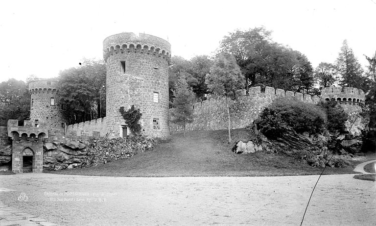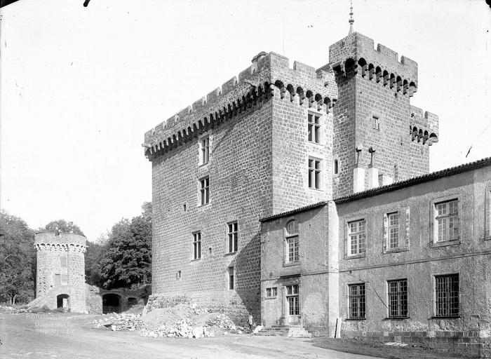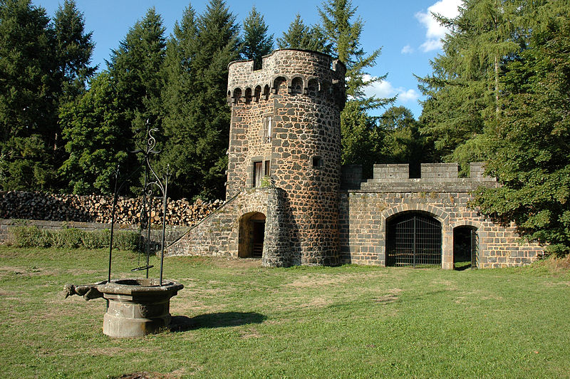 Le Domaine du Château-Dauphin à Pontgibaud est une ancienne forteresse médiévale organisée autour d'un double donjon reposant directement sur la roche. Situé rue du Frère Genestier, il occupe le rebord occidental de la cheire de Pontgibaud, coulée de lave issue du puy de Côme, dans le Puy-de-Dôme. L'entrée du domaine fait face à une ancienne porte de ville de l'enceinte communale, datée du XVe siècle et classée au titre des monuments historiques. Le parc boisé du domaine couvre environ 45 hectares, complétés par quelques hectares de terres cultivées et de prairies ; au XVIIIe siècle sa superficie était de 3 000 hectares. Le bâtiment principal forme un rectangle de 22 sur 25 mètres ; il associe un donjon carré et un donjon rond juxtaposés mais indépendants. Le donjon carré comporte deux corps d'habitation répartis sur trois étages autour d'une cour initialement à ciel ouvert, aujourd'hui couverte au XIXe siècle par une verrière. La porte d'entrée s'ouvre sur cette cour ; elle était autrefois équipée d'un assommoir. Le donjon rond, partie la plus massive, présente une pièce profonde dite cul de basse-fosse et des murs d'environ 3,95 mètres d'épaisseur ; il a pu servir de prison. Les étages inférieurs servaient au stockage de munitions et de vivres ; l'accès aux niveaux supérieurs se fait depuis la cour par deux escaliers à vis, dont l'un porte les armes des La Fayette. L'enceinte originelle comprenait sept tours ; six sont encore debout et la septième, la tour des Clapiers, fait l'objet d'une restauration. Un rempart reliait ces tours et fermait la basse-cour, mais certaines parties présentent des fissures, des infiltrations et un risque d'effondrement qui menace la bergerie et la grange du XIXe siècle. Un éboulement a récemment affecté le parement du donjon rond, et l'étanchéité du chemin de ronde et de la partie sommitale en plomb doit être reprise. Le château abrite par ailleurs le musée des mines d'argent du canton de Pontgibaud. Le château et ses dépendances ont fait l'objet de plusieurs protections au titre des monuments historiques, avec des classements, inscriptions et reclassements successifs aboutissant à un reclassement le 20 octobre 1995 ; ce classement porte notamment sur le château, six tours d'enceinte, les communs, le sol, le puits, la fontaine et le jardin potager. À l'intérieur, la grande salle transformée en salon présente des peintures refaites au XIXe siècle par Maioli et un peintre local, des boiseries en chêne du menuisier Martin et des ferronneries de Larchevêque. La salle à manger est décorée de boiseries en chêne, la bibliothèque conserve ses voûtes et un plafond peint selon le modèle du salon, et la chambre d'honneur présente des boiseries et tissus provenant de Riom. La chapelle a également été décorée par Maioli ; au cours des travaux du XIXe siècle l'installation d'une turbine hydraulique sur la Sioule a permis de doter le château et la commune de l'électricité, puis, ultérieurement, de l'eau courante et de l'eau chaude. Le jardin potager, cité dès la fin du XVIe siècle et réaménagé au XVIIIe siècle, est classé ; sa surface est de 96 ares et il comporte terrasses et carreaux sur trois niveaux, soutenus par des murs de lave en trachyandésite. Le jardin d'agrément, en belvédère au-dessus du potager, et les jets d'eau du XVIIIe siècle, alimentés par une source à Chaucelles, ont été conçus pour l'arrosage et s'ordonnent pour être vus depuis le château. Les murs sombres en lave servent d'accumulateurs thermiques et le dessin en perspective du jardin est décalé par rapport à l'axe du château ; le jardin est inscrit à l'Inventaire général et labellisé Jardin remarquable ; il fait actuellement l'objet d'une restauration soutenue par l'État, le conseil régional, le conseil général et les propriétaires. Le musée des mines, installé dans les communs par l'association La route des mines Dômes et Combrailles, retrace l'histoire de l'exploitation de la galène le long de la Sioule et présente les techniques d'extraction et de fonte. Entre 1853 et 1897, 68 kilomètres de galeries et 2 900 mètres de puits furent creusés et les fonderies ont produit 50 000 tonnes de plomb et 100 tonnes d'argent ; la zone minière s'étend sur environ 10 km le long de la vallée et les veines de galène sont enchâssées dans des roches gneissiques et des migmatites. Les mines auraient été exploitées dès l'époque romaine et des documents à partir du VIIIe siècle attestent d'une exploitation plus ancienne ; la propriété minière fut agrandie en 1554 et, au XIXe siècle, des concessions proches du château furent ouvertes, employant plusieurs centaines d'ouvriers sous et en surface. Le domaine comprend parmi ses communs le bâtiment du musée, une remise à voitures, la ferme et un pigeonnier en pierre de lave du XIXe siècle classé, situé près de la tour de la ferme. Le château, le jardin et le musée sont ouverts aux visites guidées et accueillent régulièrement animations et manifestations telles que marchés artisanaux, journées du livre, spectacles son et lumière et expositions d'art.