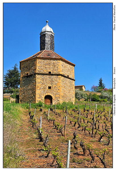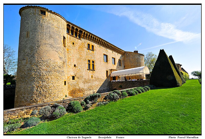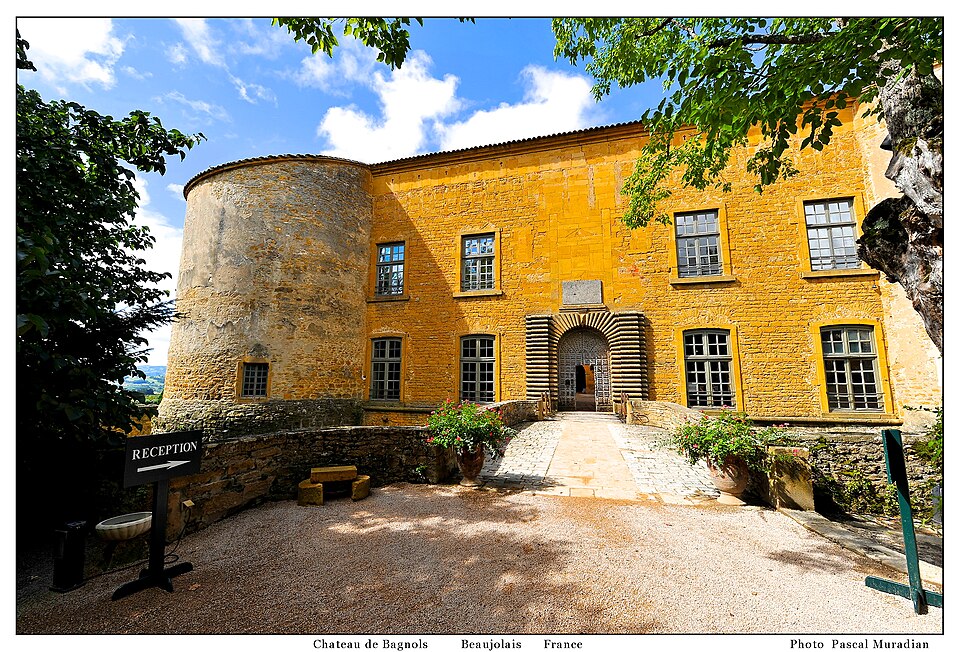 Le domaine du château de Bagnols, attesté dès le XIIIe siècle, s’étend au sud du bourg de Bagnols, à flanc de colline, au cœur du pays des pierres dorées entouré de vignes. Originellement château fort, il a été profondément remanié aux XVe et XVIIIe siècles puis transformé en demeure d’agrément; il a été converti en hôtel de luxe à la fin des années 1980. L’édifice principal adopte une forme pentagonale et sa structure paraît remonter aux XIIIe–XIVe siècles. Le parc clos est entouré d’un mur d’enceinte ponctué de trois tours rondes; l’enceinte du château, de plan pentagonal, est flanquée aux angles de tours rondes et conserve les corbeaux d’un ancien couronnement de mâchicoulis. À l’extérieur de l’enceinte se trouve un pigeonnier octogonal; la propriété comporte aussi des terrasses, des loggias, une glacière et un jardin à bassins.