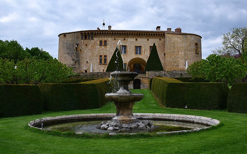 Architecturalement, l’ensemble se compose de quatre corps de logis disposés autour d’une cour intérieure pavée, ouverts côté cour par des fenêtres à meneaux. Des peintures murales et un décor mural riche subsistent à l’intérieur, notamment dans la salle des gardes où un écu placé au-dessus de la cheminée rappelle la visite de Charles VIII; d’autres salles conservent des décors raffinés attribués en grande partie à la Grande Fabrique de Lyon. Les communs, les ponts sur les douves asséchées, les petits pavillons d’angle et les murs de soutènement des terrasses datent du XVIe siècle. Le jardin, la terrasse qui le domine et la glacière sont anciens et participent au caractère historique du lieu.