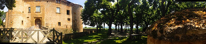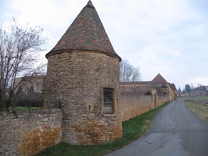 Le domaine en totalité et comprenant notamment : le château, la cour et son puits, la fontaine, les communs, les douves et leurs ponts, les terrasses, les loggias, la glacière, la galerie souterraine, le mur et les tours d'enceinte, les bâtiments au nord, et la parcelle A 779 sur laquelle il se situe, le pigeonnier et la parcelle A 265 sur laquelle il se situe, tels que délimités en rouge sur le plan annexé à l'arrêté : classement par arrêté du 6 mai 2014