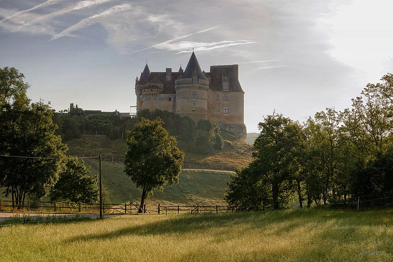 Le château de Bannes, situé sur la commune de Beaumont‑du‑Périgord dans le département de la Dordogne, occupe le sommet d'un éperon rocheux dominant la vallée de la Couze. Le site présente une occupation ancienne, comme l'attestent des sarcophages et une monnaie de Vespasien découverts vers 1840 entre le château et l'église. Le château lui‑même apparaît dans les sources au XIVe siècle et appartient alors à Jean de Seignal ; il est pris par Ramonet de Sort, capitaine au service des Anglais, en 1409. Démantelé en 1442 à la fin de la guerre de Cent Ans, il subit des destructions mais certains pans de murs médiévaux ont été réutilisés dans les constructions ultérieures. Acquis en 1510 par Brandelis de Gontaut‑Biron, le domaine est reconstruit au début du XVIe siècle, vraisemblablement avec l'appui de son frère Armand, évêque de Sarlat, ce qui lui vaut d'être considéré comme l'un des châteaux de la Renaissance les plus connus du Périgord. L'intérieur est en grande partie conservé : escaliers, nombreuses cheminées et peintures murales attribuées au XVIe siècle composent son décor. La cour intérieure s'organise au cœur d'un ensemble de pavillons dissymétriques reliés par des tours rondes et des tourelles d'escalier ; la tour dite d'Henri IV conserve un décor peint et intègre une tour médiévale antérieure, de diamètre plus petit. L'approche de la forteresse est défendue par une vaste barbacane arasée ; l'accès se faisait par un pont‑levis et un châtelet, devant une courtine surmontée d'un chemin de ronde à mâchicoulis. Le portail d'entrée est encadré de colonnettes ornées de fleurs de lys et d'hermines, et la grande cheminée de la salle se distingue par un manteau sculpté en quatre registres, portant des monogrammes (LA pour Louis XII et Anne de Bretagne), des devises et des animaux héraldiques. Un pigeonnier circulaire du XVIIIe siècle se situe en contrebas du château. Après la période des Gontaut‑Biron, la seigneurie est vendue à Jean II de Losse en 1571 et passe ensuite à la famille Losse jusqu'en 1882 ; elle est alors acquise par la famille Fayolle du Moustier, puis par M. Lemasson en 1960. Propriété privée, le château a connu quelques restaurations mais n'a pas subi de remaniements importants, et il n'est pas ouvert au public. Il est classé monument historique depuis 2002.
