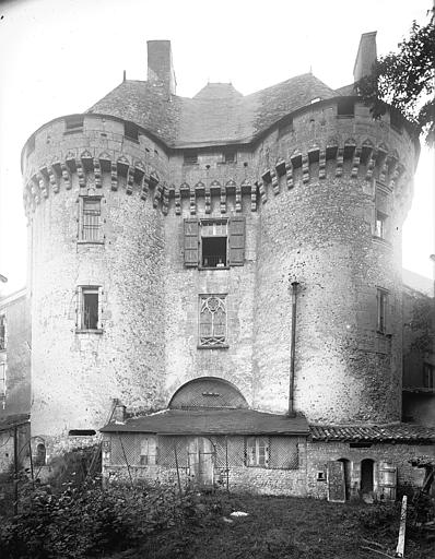 Le site est occupé par une forteresse depuis le haut Moyen Âge, un château étant mentionné dès les XIe (voire Xe) siècle. L'édifice actuel résulte d'une reconstruction à la fin du Moyen Âge, menée sur l'ordre de Marguerite de La Rochefoucauld pour relever la seigneurie après la guerre de Cent Ans ; des travaux sont encore attribués à la période autour de 1480. La seigneurie, puissante dans la région sous les La Rochefoucauld, passa ensuite entre diverses mains, dont celles de Richelieu puis de Louvois, avant de revenir aux La Rochefoucauld au début du XVIIIe siècle. Lors de la Fronde le château fut brièvement investi et assiégé, sans pour autant être détruit. À partir du XVIIe siècle ses occupants y résident de moins en moins et le donjon se dégrade au XVIIIe siècle. Vendu à la Révolution, le châtelet sud-est servit de prison jusqu'en 1820. La commune acquit le château en 1845, fit abattre une grande partie des constructions et transforma les parties conservées pour y installer un hôpital et des services publics ; l'hospice resta en fonctionnement jusqu'en 1908. La grange et les écuries furent remaniées au milieu du XIXe siècle pour abriter notamment un théâtre à l'italienne, un café et des pièces à l'étage ; la salle de spectacle actuelle a été aménagée vers 1900. D'autres travaux ont eu lieu en 1860 sous la direction de l'architecte Pierre Lacombe, et un nouveau bâtiment fut construit vers 1922 par Maurice Mignon. Le château continua d'évoluer au XXe siècle ; pendant l'occupation il servit de point d'observation, et des travaux de charpente et de couverture sont signalés en 1974 et 1976. Classé au titre des monuments historiques en 1913 et inscrit en 2004, il fait depuis 2013 l'objet d'une réhabilitation conduite par la Communauté de communes des 4B - Sud-Charente, labellisée « pôle d'excellence rurale » en 2012 et soutenue par l'État, la Région et le Département. Les interventions récentes visent à moderniser le théâtre, à rendre accessibles les charpentes et le chemin de ronde, à restaurer le mur d'enceinte et à restituer une lecture plus médiévale de l'ensemble, avec notamment la remise en valeur d'une tourelle orientale la plus ancienne. Aujourd'hui le château est partiellement propriété de la Communauté de communes et partiellement propriété privée. En élévation subsistent principalement un fragment de la courtine nord muni d'un chemin de ronde couvert, terminé à l'est par une tour demi-cylindrique, et l'ancienne grange qui s'y adosse. Le porche d'entrée, flanqué de deux hautes tours rondes couvertes par un toit commun, conserve des « oreilles » d'escalier permettant l'accès au chemin de ronde ; l'une de ces excroissances date du XVe siècle, l'autre est un ajout du XIXe siècle. Des canonnières du XVIe siècle ouvrent dans le porche et la tourelle nord pour la défense des abords et des douves. D'autres éléments anciens évoqués par les sources ont disparu : le donjon principal au sud, complété autrefois de deux tours démolies au XVIIIe siècle, la porte sud-est sous l'église Saint-Ymas, ainsi que des parties du logis et des jardins. La chapelle castrale Saint-Ymas, reliée à l'ensemble, comportait une nef unique de quatre travées, un chevet plat orienté sud-est et une chapelle latérale voûtée d'ogives ; ces dispositions se lisent dans les descriptions anciennes. Le domaine comprenait par le passé des jeux de paume, des puits desservant le donjon et la cour, ainsi que des fossés entourant les enceintes successives. Les restaurations du XIXe siècle ont replacé partiellement les encadrements des baies, les crénelages, les angles de murs et les pignons, tandis que les aménagements plus récents ont dégagé la charpente de la grange et rendu accessibles les structures intérieures. La tourelle orientale, conservée en élévation depuis le XIIe siècle, a été débarrassée de la végétation, dotée d'une terrasse et d'un accès au chemin de ronde, offrant aux visiteurs un point de vue sur la ville. Le site est ouvert à la visite quelques heures par semaine, notamment le mardi et le mercredi, et abrite l'office du tourisme dans la façade orientale.