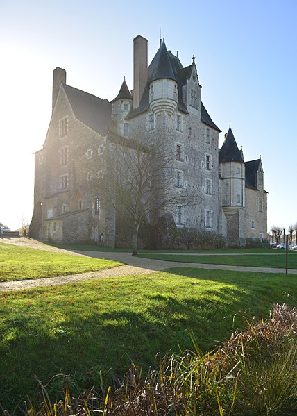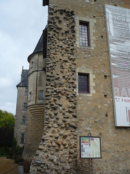 Le château de Baugé se dresse au cœur de la cité de Baugé, sur la commune de Baugé-en-Anjou, dans le Maine-et-Loire. Un dispositif défensif existait sur ce site dès le début du second millénaire : en 1007 Foulques III Nerra fit édifier une forteresse sur un éperon rocheux, au confluent du Couasnon et de l'Altrée. L'église Saint-Laurent, fondée au début du XIe siècle (1015-1025), voit son chœur reconstruit en 1547, tandis que l'enceinte et l'église sont détruites au XIXe siècle. Une fortification est attestée au cours de la seconde moitié du XIVe siècle ; Yolande d'Aragon fait remparer le site en 1430, puis préfère incendier son château en 1436 plutôt que de le laisser aux Anglais. Le 22 mars 1421, l'armée franco-écossaise commandée par John Stuart bat les troupes anglaises de Thomas de Lancastre dans les environs, événement auquel le lieu reste associé. Héritier des ruines, René d'Anjou confie à Guillaume Robin la reconstruction du logis entre 1455 et 1465 : il y installe un pavillon de chasse de dimensions proches d'un manoir seigneurial, achevé en 1465. Après la mort du roi René, l'Anjou est rattaché à la couronne en 1480 et le château connaît des périodes d'abandon et de délabrement. Aux XIXe et XXe siècles, le bâtiment accueille successivement la gendarmerie, la mairie, une caserne de pompiers, une salle de justice et diverses salles municipales ; un premier musée y est ouvert en 1905. Après la Seconde Guerre mondiale, les Monuments historiques restaurent les fenêtres à meneaux. Classé au titre des monuments historiques par arrêté du 13 avril 1961, le château l'est notamment pour ses façades, sa tourelle d'escalier, ses toitures et plusieurs éléments intérieurs tels que l'oratoire, la bibliothèque et certaines pièces sous combles. Construit en moellons de calcaire et de grès, il est enduit au sable et à la chaux. L'intérieur comprend de vastes salles d'honneur desservies par un escalier de pierre dont la colonne centrale fait naître une voûte en palmier unique en Anjou. Huit clés de voûte armoriées portent les motifs de l'Anjou, l'étoile de Jérusalem, le blason d'Aragon, des feuilles de groseillier et les initiales RI, renvois aux armoiries de René d'Anjou et de ses épouses Isabelle de Lorraine et Jeanne de Laval. Des cheminées ont été remaniées au XVIIIe siècle et l'oratoire, dit du Roi René, est éclairé par des vitraux du XIXe siècle. Depuis 2011, la chambre privée du roi René et l'oratoire sont accessibles avec un mobilier reconstitué. Le château, en centre-ville de la cité close, accueille aujourd'hui un parcours-spectacle qui retrace la vie du roi René ; le premier étage présente des thèmes tels que la dynastie des ducs d'Anjou, l'Anjou et l'Europe, la chevalerie et les tournois, l'amour courtois et la Croix d'Anjou devenue plus tard Croix de Lorraine, tandis que les combles réaménagés servent de salle pour un son et lumière retraçant l'histoire du roi et du château. Alexandre Dumas évoque le château de Baugé dans La Dame de Monsoreau, le présentant comme une forteresse et en faisant le lieu d'emprisonnement d'un personnage de son roman.