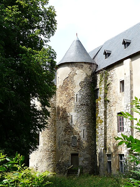 Le château du Bazaneix voit ses origines demeurer mal connues, bien qu'il soit mentionné au XIVe siècle. Il est entouré de douves circulaires alimentées par de l'eau vive. L'édifice se compose d'un corps de logis rectangulaire, flanqué de tours rondes aux angles sud‑ouest et sud‑est, et d'une tour d'escalier circulaire implantée devant la façade principale.