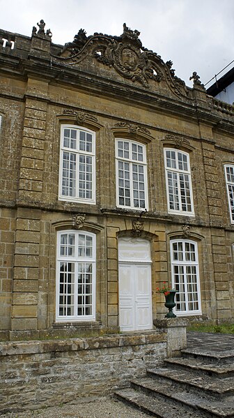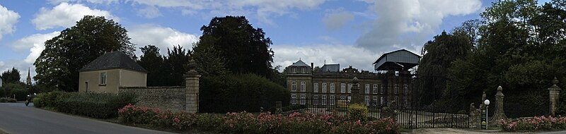 Le bâtiment comprend un corps central flanqué de deux ailes saillantes aux angles incurvés. La façade donnant sur le parc, de style Louis XIV, est couronnée d'un fronton triangulaire sculpté de figures féminines. L'étage présente un large balcon sur un portique central et des têtes de macarons au‑dessus des fenêtres. La façade d'entrée porte un fronton découpé dans un cartouche rocaille asymétrique et des masques ornent les clefs des fenêtres. Dans le parc se signale une orangerie néoclassique à façade convexe, coiffée d'un toit en ardoises qui suit la même courbure et dont le sommet est arrondi. De grandes baies alternent avec des fenêtres surmontées d'oculi. Les grilles d'entrée sont également classées et le parc, clos, comporte des pièces d'eau.