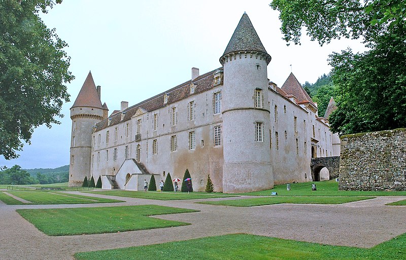 Perché à mi-pente d'une colline boisée, le château a la forme d'un trapèze irrégulier avec une tour ronde à chaque angle et un donjon carré, organisés autour d'une cour intérieure. Au XVIIe siècle, Vauban fait ouvrir une porte dans la façade arrière pour faciliter l'accès des voitures. Le plan et les aménagements intérieurs témoignent des transformations entreprises sous sa propriété.