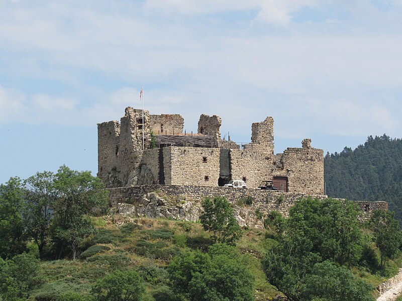 Le château fort de Beaufort, situé à Goudet (Haute-Loire, Auvergne-Rhône-Alpes), domine la vallée de la Loire et le ruisseau de la Fouragette depuis un piton rocheux qui commande quatre vallées. Construit au XIIIe siècle pour surveiller et contrôler la région, il illustre l'adaptation d’un château féodal aux évolutions de la construction militaire, notamment à l’emploi de l’artillerie. Il a joué un rôle important pendant la guerre de Cent Ans et les guerres de Religion, puis a été progressivement abandonné après la Révolution, ce qui l’a conduit à l’état de ruine au début du XIXe siècle; une dame de Beaufort y vivait encore au XVIIIe siècle. Jusqu’à la Révolution l’édifice portait le nom de château de Beaufort; il est aujourd’hui souvent désigné comme château de Goudet. L’ensemble est protégé par un mur d’enceinte, en partie reconstruit au XVe siècle, qui entourait la forteresse installée à mi-pente de la butte. Le plan primitif du château est carré; la cour était bordée au sud par un logis adossé. Au XVIe siècle, Antoine de la Tour fit ajouter une tour à l’angle nord‑ouest, une grosse tour en fer à cheval à l’angle sud‑ouest et une fausse braie dont subsistent le pan nord et une partie du pan sud avec tour d’angle. La tour du XVe siècle était renforcée intérieurement par un mur de doublure et percée d’archères et de canonnières. À l’intérieur de l’enceinte, seules quelques élévations se dressent encore; des vestiges au sol et enfouis laissent deviner les séparations des parties habitées, et au nord‑est subsistent les restes d’une salle voûtée et d’une cheminée. On voit également une citerne qui a souvent été, à tort, qualifiée d’oubliette, ainsi que des murs écroulés révélant partiellement le plan de l’édifice. Les dégradations tiennent moins à une destruction révolutionnaire systématique qu’au prélèvement et à la réutilisation des pierres de taille par les habitants pour d’autres constructions. Entre 2000 et 2005, des ateliers et des travaux de consolidation ont permis de créer un site permanent consacré aux techniques de construction médiévale — fresque, taille de pierre, ébénisterie, maçonnerie — faisant appel à une grue médiévale dite « cage à écureuil »; quelques ateliers temporaires y ont également eu lieu. Depuis 2008, le site est une propriété privée ouverte au public selon un calendrier actualisé chaque année.