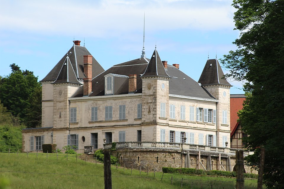 Le château de Beaumont, élevé au XIXe siècle à Saint‑Étienne‑sur‑Chalaronne (Ain), succède à un château fort médiéval construit sur une motte castrale citée vers 1330, dont le fief est attesté du XIVe siècle à la Révolution. L'édifice du XIXe siècle a remplacé une construction antérieure de plan carré avec tourelles d'angles rondes, rasée vers 1853, et une tour carrée nord y a été ajoutée en 1865. Les écuries, édifiées sur d'anciens communs, présentent une façade monumentale ouvrant sur un porche et la sellerie et abritent un manège dont une partie du mécanisme subsiste. Au sud, une pompe actionnée par des chevaux alimentait les abreuvoirs et une partie du château en eau ; de part et d'autre se trouvent une forge et un atelier, et au sud‑est le logement des palefreniers est surmonté d'un pigeonnier. Réalisées dans un style néo‑régionaliste, les écuries associent peinture, cuivre, abreuvoirs en émail et plaques de marbre et mettent en œuvre les préceptes hygiénistes du XIXe siècle. Les écuries dans leur intégralité, les façades et toitures du château, le puits, le potager, sa clôture et ses pavillons, la motte castrale et l'ensemble parcellaire (à l'exception du terrain de tennis) sont inscrits au titre des monuments historiques par arrêté du 5 juillet 2006.