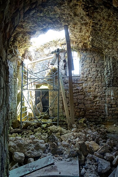 Le château féodal de Beaumont-sur-Oise, aujourd’hui ruiné, domine la rive gauche de l’Oise sur un coin de plateau boisé de la commune du même nom, dans le Val-d’Oise (Île-de-France). La ville médiévale s’est organisée autour de ce site qui, dès le Xe siècle, associait donjon, collégiale castrale et église paroissiale au sein d’un système féodal. Le château, mentionné pour la première fois en 953, est alors décrit comme une construction en bois sur motte; la place forte a été détruite et reconstruite à plusieurs reprises du Xe au XVIIe siècle, laissant une évolution architecturale lisible sur le site. Le noyau castral comprenait un large donjon roman rectangulaire à contreforts, pourvu d’une chapelle absidiale, et fut entouré au XIIIe siècle d’une enceinte flanquée de tours cylindriques. Une collégiale carolingienne a subsisté et une église élevée au XIIe siècle devint le prieuré Saint-Léonor avant d’être vendue comme bien national et abattue pendant la Révolution ; au XIXe siècle l’ensemble n’était plus que ruines. Au fil des conflits, la forteresse subit de nombreuses destructions : lors de la Grande Jacquerie une partie des fortifications fut détruite puis reconstruite en 1403, puis le château connut des sièges et occupations pendant la guerre de Cent Ans, des démolitions et des reconstructions au début du XVe siècle. En 1223, le comté rejoignit l’apanage royal et Saint Louis résida au château. Pendant le siège de Paris en 1590, le château et le village furent assiégés ; après environ un mois de résistance Jean de Poutrincourt dut se rendre et l’artillerie causa des dégâts importants aux tours. En 1814 le château, en mauvais état, cessa d’être une place militaire. Le site offrait un point de vue stratégique, dominant l’Oise d’une vingtaine de mètres, et comprenait une enceinte longue de 200 mètres, épaisse de 2,40 m et haute de dix à quinze mètres, formant une moitié de polygone à quatorze côtés avec sept tourelles rondes, une entrée à pont-levis et porte voûtée, ainsi qu’un donjon habitable de trois étages abritant les appartements seigneuriaux. Les fouilles archéologiques menées depuis 1984, et notamment celles de 1984 à 1987, ont mis au jour une succession de vestiges s’étalant sur un millénaire : une église qui reçut au Xe siècle les reliques de saint Léonor, un prieuré du XIe siècle avec une vaste église romane d’une nef et deux collatéraux, un cloître du XIIe siècle, puis des remaniements gothiques qui transformèrent le collatéral nord et le chevet en ouvrages défensifs remarquables. Les études ont montré que l’église gothique du prieuré et la muraille extérieure formaient autrefois un ensemble monumental dominant la vallée, tandis que le donjon roman, considéré comme l’un des plus imposants de France à son époque, et la muraille extérieure furent arasés à la fin de la guerre de Cent Ans; aux XVIe et XVIIe siècles, des aménagements d’artillerie modifièrent encore le pied du donjon. Le site archéologique du château est classé au titre des monuments historiques et les murailles ont été dégagées et réhabilitées en 1997.