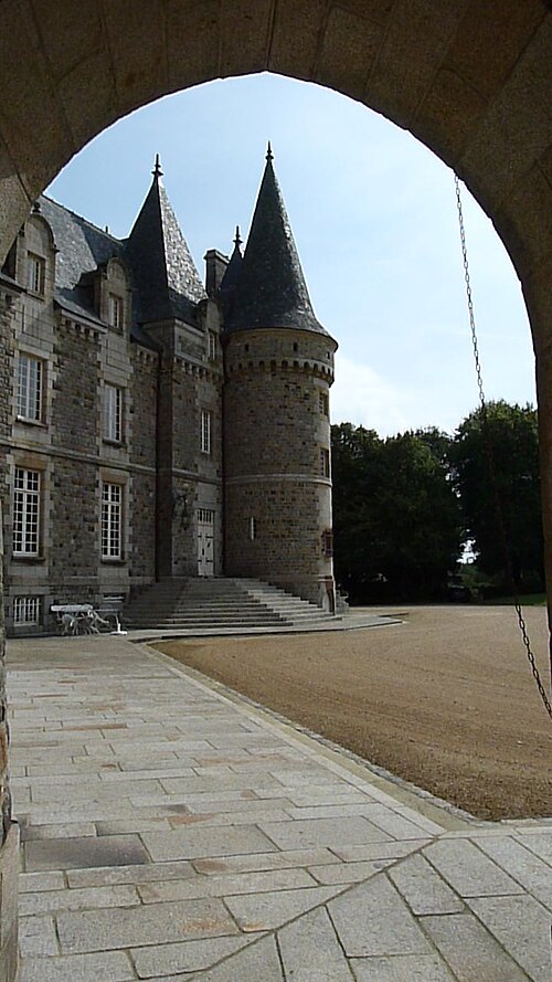 Le château de Bel‑Air, situé au nord du bourg du Pertre (Ille‑et‑Vilaine, Bretagne), a été élevé en deux campagnes engagées à partir de 1870 à l’emplacement d’un ancien manoir qui, selon certains témoignages, comportait une tour carrée, un pigeonnier, deux jardins à la française et de nombreuses promenades et charmilles séparant la propriété des champs et prairies voisines. La première campagne, commandée par Louis de Legge et conduite par l’architecte Jacques Mellet de 1870 à 1873 — très certainement aidé par son fils aîné Jules — donna un petit château néogothique aux allures de villa balnéaire dont subsistent un pavillon et une tour d’escalier circulaire. Jugé trop modeste par Paul de Legge, son fils, le domaine fit l’objet d’une reconstruction menée par Henri Mellet entre 1910 et 1920; celle‑ci multiplia par trois la surface de l’édifice et adopta un parti pris formel inspiré du style Louis XIII. L’extension a consisté en un prolongement vers le nord et l’ouest, formant un plan à deux ailes disposées à 135° et articulées autour d’un pavillon carré. De cette seconde campagne se détachent notamment la grande galerie, l’escalier d’honneur et une chapelle néogothique dont les chapiteaux reprennent, sous forme de caricatures, des figures politiques liées à l’adoption de la loi de séparation de l’Église et de l’État en 1905. Cette coûteuse réalisation illustre l’ascension sociale d’une famille aristocratique alliée aux Hays des Nétumières et traduit, par le recours aux modèles du XVIIe siècle, une volonté manifeste de légitimation monarchiste. Pour certains observateurs, dont François Loyer, le château constitue une œuvre de tonalité réactionnaire et pourrait être considérée comme l’un des derniers grands châteaux de l’histoire de France, assertion mise en relation avec l’achèvement du parc en 1928. Le plan original, la distribution ingénieuse et le confort moderne de l’époque compensent l’absence d’innovation stylistique. L’intervention successive du père et de ses deux fils montre la continuité du cabinet Mellet sur ce chantier, l’un des derniers et peut‑être des plus ambitieux d’Henri Mellet. L’ensemble s’inscrit au cœur d’une vaste parcelle aménagée pour partie en jardin à la française, bois et étang; le jardin en terrasses a été conçu par les paysagistes M. de la Villartaye de Vitré et M. Redont de Paris. Les statues ornant les plates‑bandes sont des copies de modèles célèbres, dont certaines ont été fondues dans les ateliers du Val d’Osne — l’enfant au dauphin et l’enfant porteur d’une corne d’abondance — et d’autres fournies par les établissements Bellanger. Le château de Bel‑Air fait l’objet d’une inscription au titre des monuments historiques depuis le 26 février 2001.