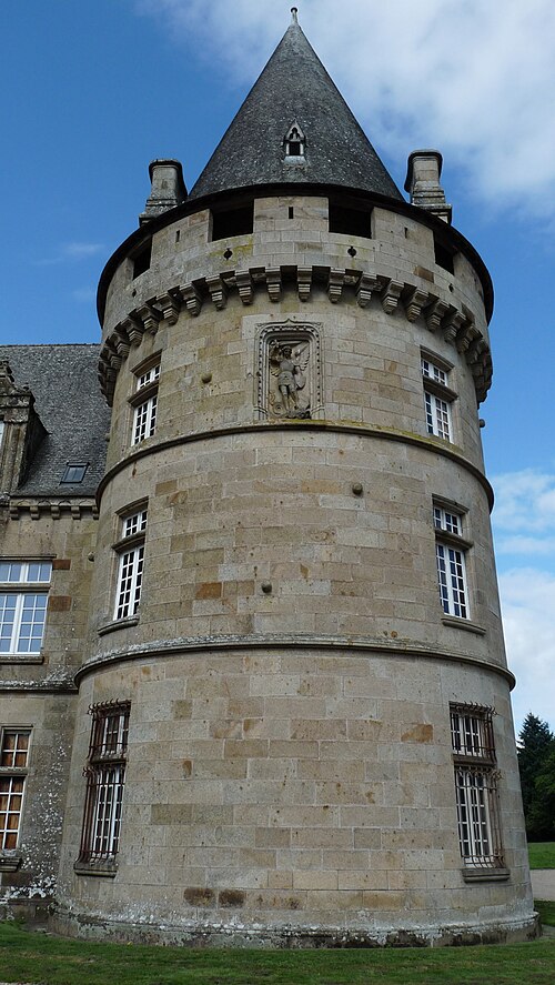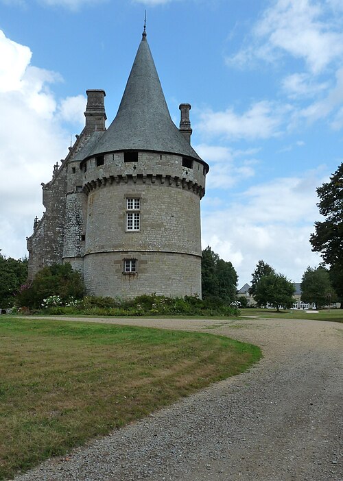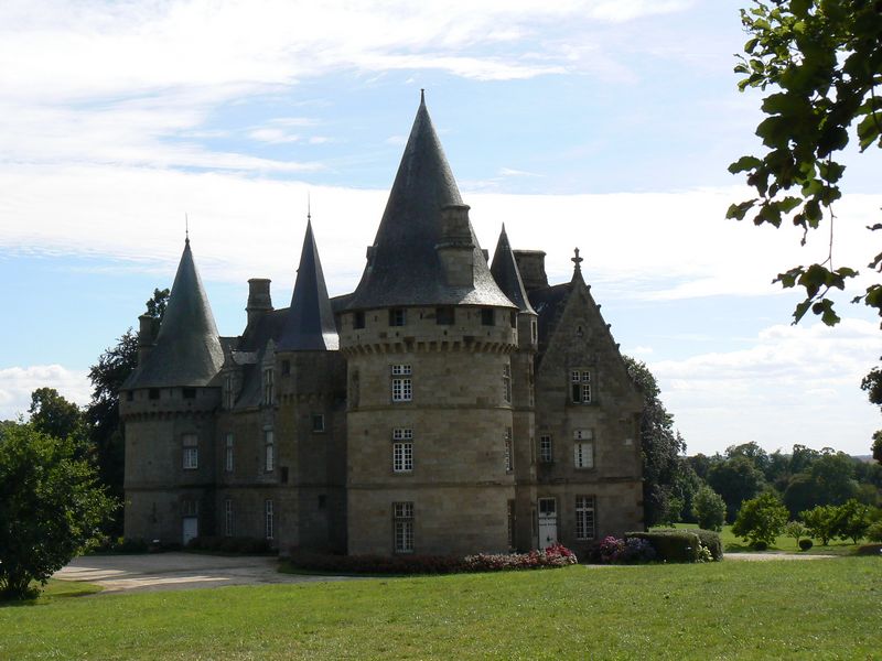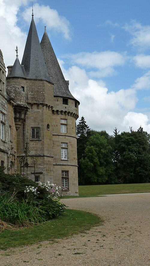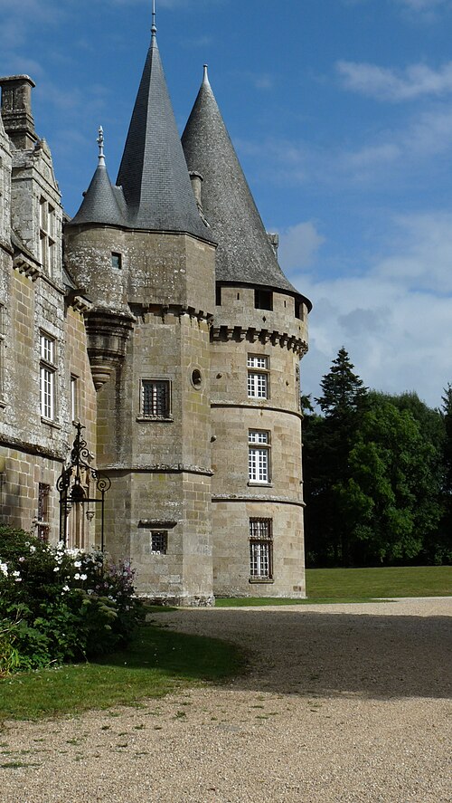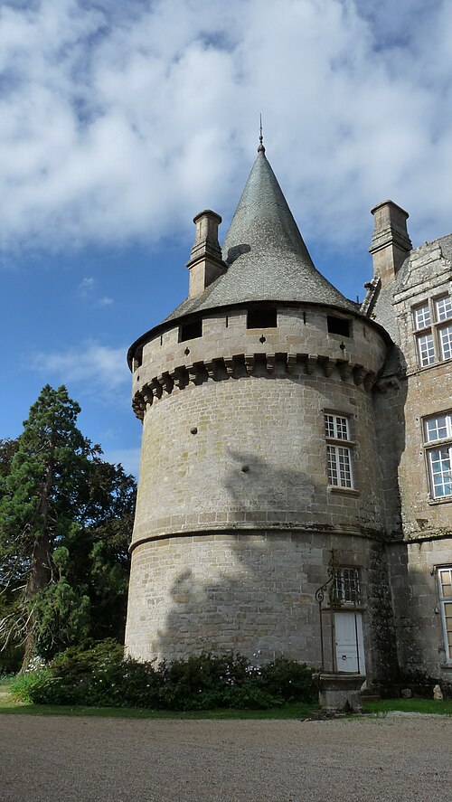 Le château de Bonne‑Fontaine se situe à Antrain, dans le département d'Ille‑et‑Vilaine. Il a été construit en 1547 et comprend deux bâtiments accolés, chacun doté d'un rez‑de‑chaussée et de deux étages. Les combles sont éclairés par des lucarnes Renaissance à croisée de pierre. Deux tours rondes flanquent la façade principale et une tour polygonale, reliée à la toiture par une petite tourelle circulaire, abrite l'escalier; la tour nord‑est aurait été ajoutée au XIXe siècle. La porte d'entrée, placée près de la tourelle, est en arc surbaissé et s'ouvre dans des voussures multiples sculptées, sommée d'une accolade et flanquée de pinacles ornés de crochets. Autrefois, le château disposait de douves, d'un pont‑levis et d'une chapelle qui ont aujourd'hui disparu. L'élégance des tourelles, des hautes fenêtres et des lucarnes sculptées adoucit la silhouette des tours trapues à mâchicoulis coiffées de toits en poivrière. L'histoire connue du domaine commence à la fin du XIe siècle lorsque Geoffroy Chaussebœuf fait donation de la terre de Bonnefontaine à l'abbaye de Saint‑Florent de Saumur. À la fin du XIIIe siècle, la seigneurie entre dans la famille de Saint‑Brice et, en 1370, Jeanne de Saint‑Brice épouse Guillaume de Porcon. La famille de Porcon, propriétaire pendant deux siècles, compte notamment Arthur de Porcon, chambellan de la duchesse Anne de Bretagne et capitaine de Fougères en 1488. Françoise de Porcon devient héritière en 1533 et épouse Pierre Giffard de La Marzelière, qui obtient l'autorisation du roi Henri II, le 5 juillet 1547, de transformer Bonnefontaine en place forte et fait édifier la partie sud, dont la grosse tour à mâchicoulis. En 1604 la seigneurie passe ensuite par alliance aux Coëtquen ; Malo de Coëtquen épouse en 1631 l'héritière et la famille est alors aussi seigneur de Combourg et gouverneur de Saint‑Malo. En 1754 Louise‑Maclovie de Coëtquen vend Bonnefontaine à Jean de La Motte ; la terre est ensuite vendue comme bien national en l'an VII et change plusieurs fois de mains. En 1806, Guy Aubert de Trégomain devient propriétaire, puis le domaine est acquis en 1858 par François de Guitton et son épouse Françoise Hay des Nétumières. D'importants travaux réalisés pour les Guitton, dirigés en 1860 par l'architecte Jean‑Baptiste Martenot, reconstruisent l'aile nord, ajoutent un corps de logis parallèle au nord‑ouest et une grosse tour circulaire à l'est, et reprennent les décors intérieurs avec remploi de boiseries du XVIIIe siècle. La création, dans les années 1870, d'un parc paysager à l'anglaise entraîne la disparition des anciennes dépendances. Ce parc, conçu par les paysagistes Denis Bühler et Édouard André, est organisé en vastes espaces naturels percés de perspectives et d'alignements de plantations. De nombreuses essences plantées à l'époque subsistent encore, parmi lesquelles des séquoias, un taxodium, des ifs de Chine, des magnolias, des cèdres, des palmiers et des hêtres pourprés. Le châtaignier dit « de la duchesse Anne », signalé par un panneau en bordure de l'allée principale, rappelle le souvenir de la duchesse Anne de Bretagne. Le château, ses façades et toitures ainsi que le puits sont inscrits au titre des monuments historiques depuis le 16 septembre 1943. Le domaine est entré par succession dans la famille de Rohan‑Chabot et appartenait en 1966 au comte de Rohan‑Chabot.
