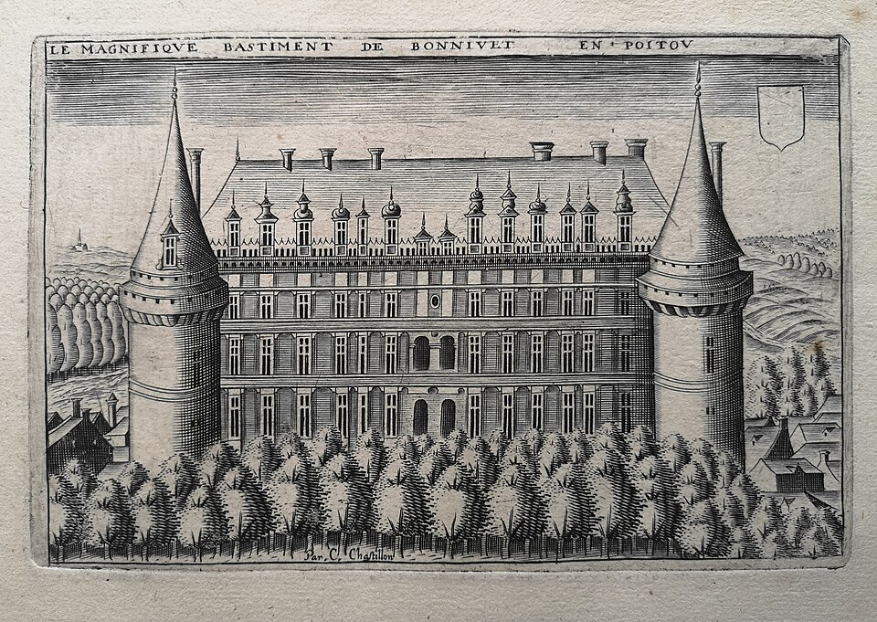 Le château de Bonnivet, situé à Vendeuvre-du-Poitou dans la Vienne, était l’un des projets les plus ambitieux de la première Renaissance française ; il a aujourd’hui disparu. Sa construction remonte au début du XVIe siècle sous l’impulsion de Guillaume II Gouffier, favori de François Ier ; elle fut interrompue après sa mort à la bataille de Pavie en 1525 et reprise aux XVIIe siècle, lors d’importants travaux menés de 1649 à 1672 par Jacques de Mesgrigny. La seigneurie passa ensuite, par alliances et transmissions familiales, aux Mesgrigny puis à la maison de Chasteigner, qui la conserva jusqu’à la Révolution ; en 1788 le domaine fut vendu par lots et transformé en carrière de pierre, entraînant la dispersion de nombreux éléments sculptés. Il reste aujourd’hui du château le mur de clôture nord de la cour d’honneur, daté de 1660, et un logis du XIXe siècle qui a réemployé des éléments de l’ancien édifice. Les vestiges et le site archéologique ont été inscrits au titre des Monuments historiques le 19 septembre 2001.