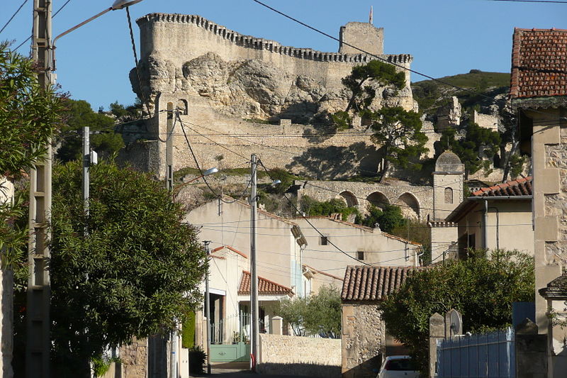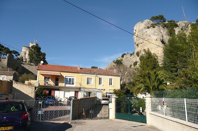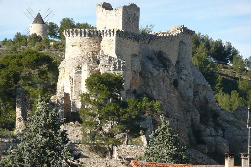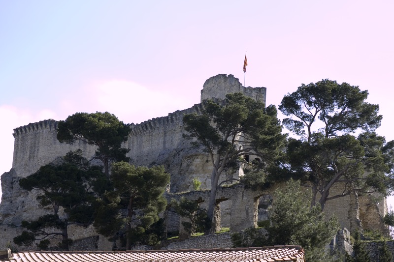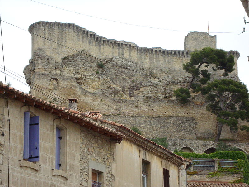 L’enceinte épouse le contour du rocher et enserre une cour longue et étroite de 45 mètres sur 9 à 15 mètres de large. Au sud se dresse une petite tour‑donjon qui semble avoir davantage joué le rôle de vigie que d’habitat ; la courtine, d’une épaisseur de 1,60 m, entourait ce dispositif défensif. La partie la plus ancienne est vraisemblablement le donjon, tour rectangulaire centrale remontant au XIe siècle. La courtine qui entoure le donjon date du XIIIe siècle, tandis que les mâchicoulis, décorés de motifs trilobés proches de ceux du château de Tarascon, appartiennent au XIVe siècle. Ce n’est qu’à la fin du XIVe siècle que sont construits le logis seigneurial et la grande terrasse côté ouest. Aux XVIIe siècle se développent des jardins en terrasses et une voie carrossable menant au portail nord.