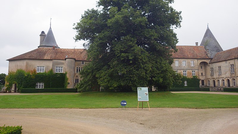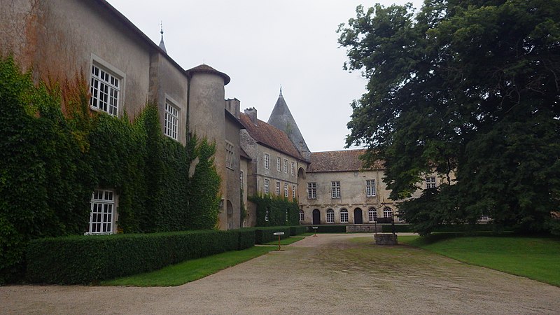 Sur son front est, le château conserve un aspect résolument féodal, marqué par quatre tours rondes coiffées de toits « en poivrières » — vestiges d'un dispositif défensif plus dense aux XIVe siècle — tandis que du côté intérieur s'adossent les corps de logis du XVIe siècle bordant une cour et une aile sud munie d'une galerie en arcades. L'intérieur reflète la superposition d'époques : certains salons conservent leurs plafonds d'origine et la chapelle Saint-Vincent, gothique, abrite plusieurs tombeaux seigneuriaux.