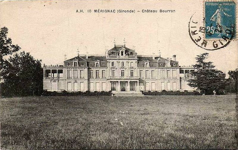 Le château de Bourran est situé à Mérignac, en Gironde, dans le parc de Bourran. D'inspiration classique, il a été édifié pour l'armateur Émile Ravesies qui fit raser la chartreuse du XVIIIe siècle pour construire l'édifice actuel, réalisé en 1870 par Jules et Paul Lafargue. De plan rectangulaire, le château se compose de cinq corps de bâtiments, le corps central et les deux ailes étant alignés. L'accès au corps central se fait de chaque côté sous un portique ; au nord celui-ci est soutenu par quatre colonnes toscanes, au sud par des colonnes ioniques. La façade sud du corps central est ornée dans un style néo-Renaissance. L'intérieur comporte des décors peints et des boiseries, auxquels le sculpteur Tapiau a apporté des éléments de décoration. Le parc, aménagé par le paysagiste Louis Le Breton, s'organise autour d'un lac parsemé d'îles. Il comportait plusieurs fabriques, dont subsistent un pont de type médiéval, une rocaille, une tour hydraulique d'apparence classique et les attaches en rocaille d'une passerelle métallique disparue. Aux XVIIe et XVIIIe siècles, le domaine appartint à la famille des Bourran, servit de lieu de villégiature et fut exploité comme domaine viticole. Les Minimes de Bordeaux s'installèrent ensuite sur le domaine. Au XVIIIe siècle, la chartreuse et le domaine appartinrent au marquis de Cazeaux, puis, à partir de 1768, à François-Armand de Saige, riche négociant et parlementaire, maire de Bordeaux en 1791. Saige intégra le domaine dans un système de production et de vente des vins destinés principalement à l'exportation vers les Antilles. Saige fut guillotiné en 1793 et le domaine vendu comme bien national la même année ; il appartint ensuite à Louis Marcotte de Quivières, maire de Mérignac, conseiller général de Gironde et ancien sous-préfet. En 1865, le domaine fut acquis par l'armateur Émile Ravesies et son gendre, le banquier Léopold Piganeau. Propriété du département, le château abrite aujourd'hui l'INSPE de l'académie de Bordeaux, établissement qui a succédé à l'École normale d'instituteurs, puis à l'IUFM et à l'ESPE d'Aquitaine. Le château et le parc sont inscrits au titre des monuments historiques depuis le 9 janvier 1992.