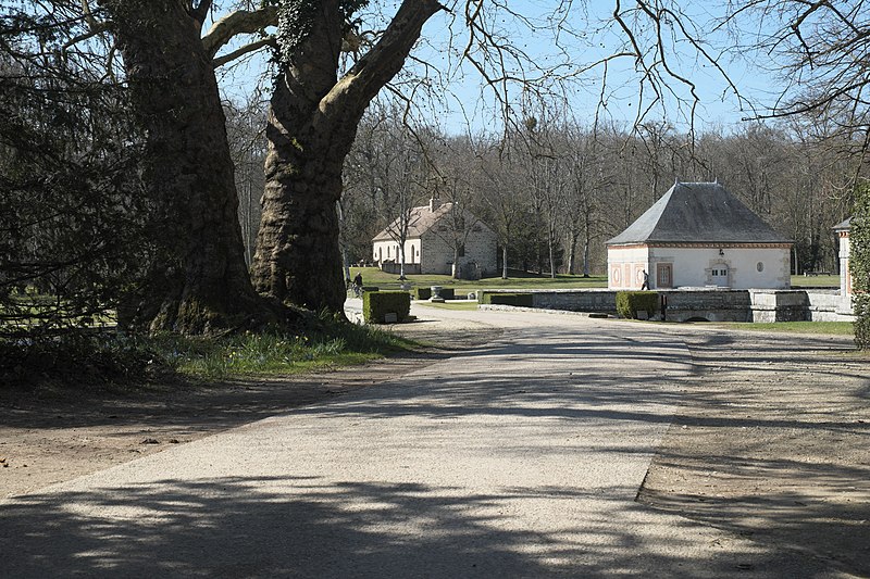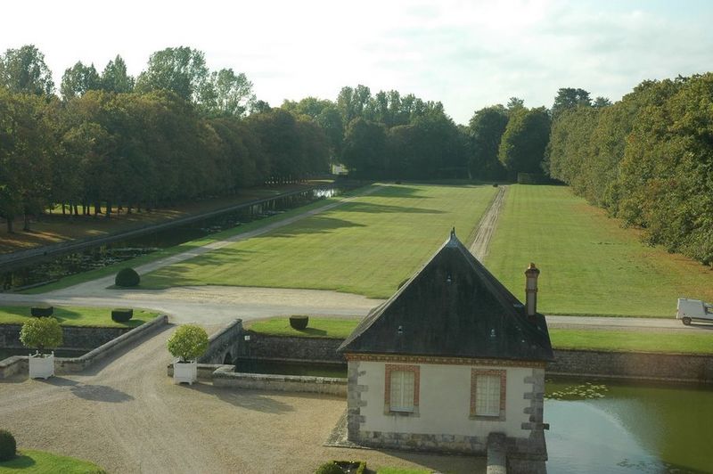 Le parc, clos de murs, est composé de pelouses et de bois et s’ouvre sur un réseau d’eau alimenté par la Source Saint-Sévère, de tradition néolithique, qui alimente le canal. Le parterre nord est fermé par une statue de Cérès et une statue de saint Joseph, œuvre de Fernand Py, se trouve dans les futaies près de la maison dite de d'Artagnan. Les archives anciennes ont été perdues à la Révolution ; les aménagements paysagers reflètent les modes successives : jardins clos médiévaux aux XVIe–XVIIe siècles, ordonnancement à la française à la fin du XVIIe siècle, percement de la perspective du canal, transformation à l’anglaise au XIXe siècle, puis, en 1930, le comte Blaise de Montesquiou a réintroduit un parc à la française avec la plantation de plus de 500 tilleuls, la mise en place d’ifs taupiers et de buis taillés.