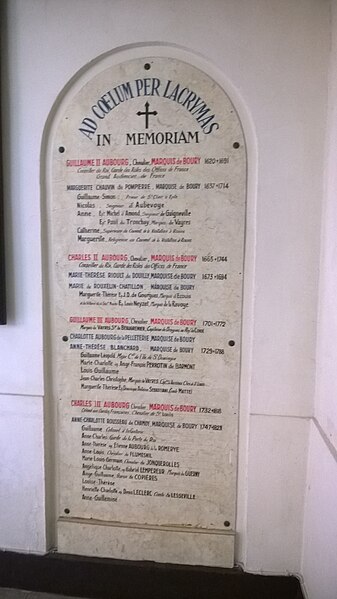Le château de Boury, situé à Boury-en-Vexin (Oise, Hauts-de-France), se trouve au centre du village, près de la RD 6. Il occupe un terrain plat, à la limite du Vexin français, du Vexin normand (proximité de Gisors) et de la Picardie. La seigneurie est restée, avec quelques interruptions, dans la descendance du premier seigneur connu depuis le XIe siècle. Un premier château, construit au XIe siècle, a laissé des vestiges : une tour ronde et un colombier situés dans la cour d'une ferme voisine. Le château actuel, conçu comme une demeure de plaisance, a été dessiné par Jules Hardouin-Mansart, tandis que l'ornementation des façades est due au sculpteur Michel Poissant. La cour d'honneur est bordée au nord par une orangerie et au sud par des communs ; une galerie dessert les pièces du rez-de-chaussée et donne accès à deux escaliers latéraux. Le jardin d'agrément, attribué à André Le Nôtre, fait partie du domaine et comprend notamment une glacière. Par arrêté du 18 juin 1931, le château — ses façades et toitures et la chapelle attenante — ainsi que les anciennes écuries situées à l'entrée et dans le parc, le parc lui-même, un bâtiment du parc comprenant l'orangerie, la buanderie et le colombier, et la fontaine-abreuvoir ont été classés au titre des monuments historiques. Le domaine illustre la transformation du site d'une fortification médiévale en une résidence de plaisance.
