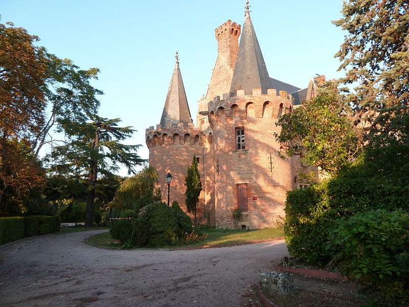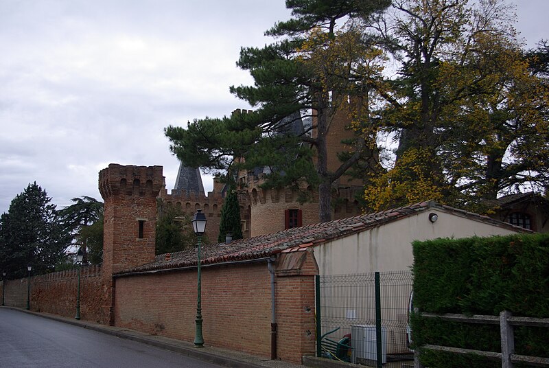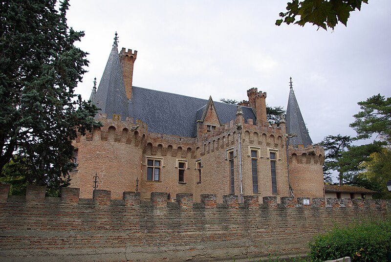 Le château de Brax, situé sur la commune de Brax en Haute-Garonne (Occitanie), présente un plan rectangulaire en brique typique de la transition entre le château fort et la demeure de plaisance de la Renaissance. Le corps de logis, d'environ 23 x 10 m2, est cantonné de quatre tours circulaires épaisses couronnées de créneaux et surmontées de flèches polygonales ; les toits sont en ardoise et ponctués de hautes cheminées. La façade principale donne sur le parc et s'ouvre par un perron à double rampe ; à la façade postérieure, côté rue, est accolé le bâtiment contenant le grand escalier. L'ensemble est ceinturé par un chemin de ronde soutenu par de faux mâchicoulis réalisés en encorbellement de briques et petites arcatures, et l'enceinte du domaine est fermée par un mur en brique. Le parc, situé à moins de deux kilomètres à l'est de la forêt de Bouconne, mesure environ 700 mètres d'est en ouest et 250 mètres du nord au sud ; il est traversé par le ruisseau de la Chauge, affluent du Courbet, et le château ainsi que l'entrée se trouvent dans le coin sud-ouest. On distingue dans le parc une zone boisée d'environ dix hectares et une zone arborée autour du château et des dépendances ; le patrimoine végétal comprend notamment un cèdre de l'Himalaya, un alignement de sept platanes proche du manège couvert, des chênes, des cyprès et des arbres pleureurs.