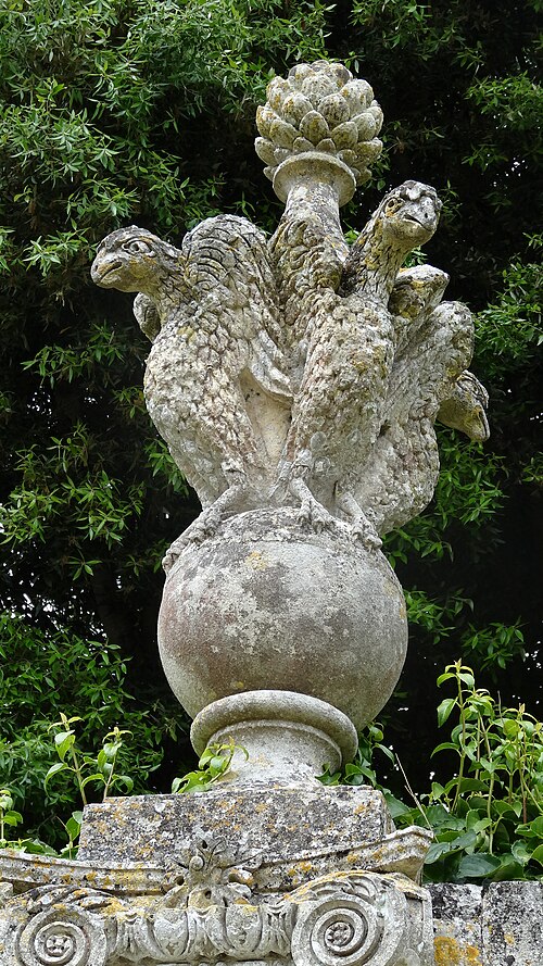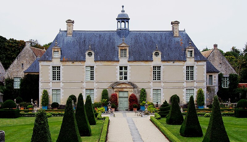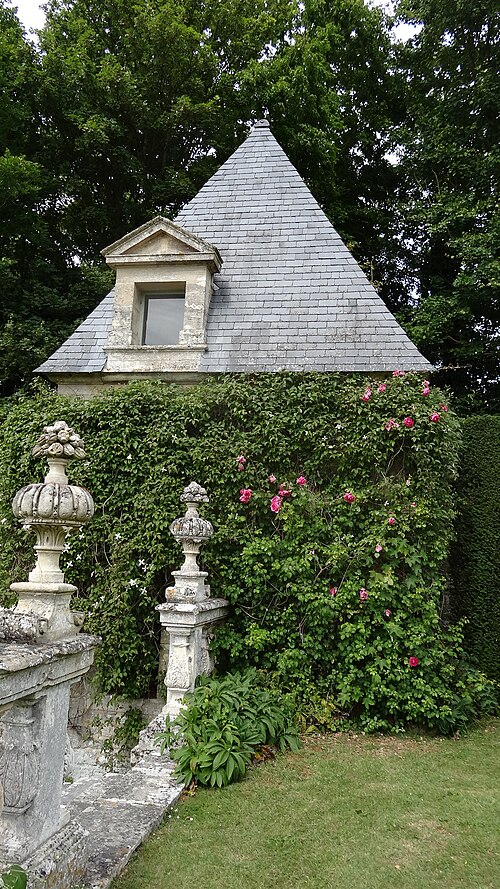 Le corps de logis du XVIIe siècle s'élève sur deux niveaux ; un perron conduit à la porte d'entrée encadrée de pilastres et surmontée d'un entablement à triglyphes et d'un fronton demi-circulaire. Le toit est percé de cinq lucarnes alignées sur les baies inférieures et la travée centrale est dominée par un lanternon remonté au XXe siècle ; la façade sud, similaire, est de plain-pied. À l'intérieur, de belles cheminées de pierre reprennent des décors en rapport avec ceux des jardins. Deux grands bâtiments perpendiculaires ferment la cour qui donne sur la route.