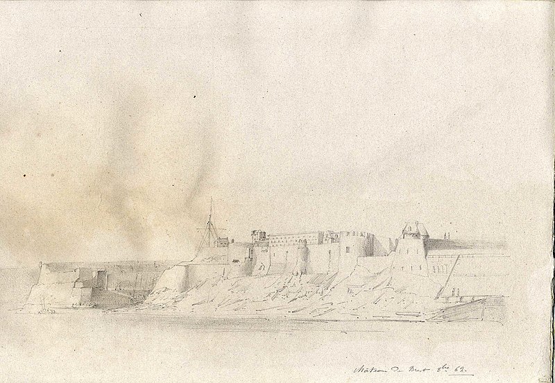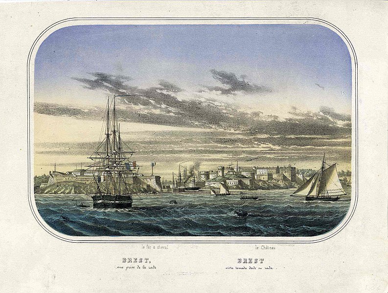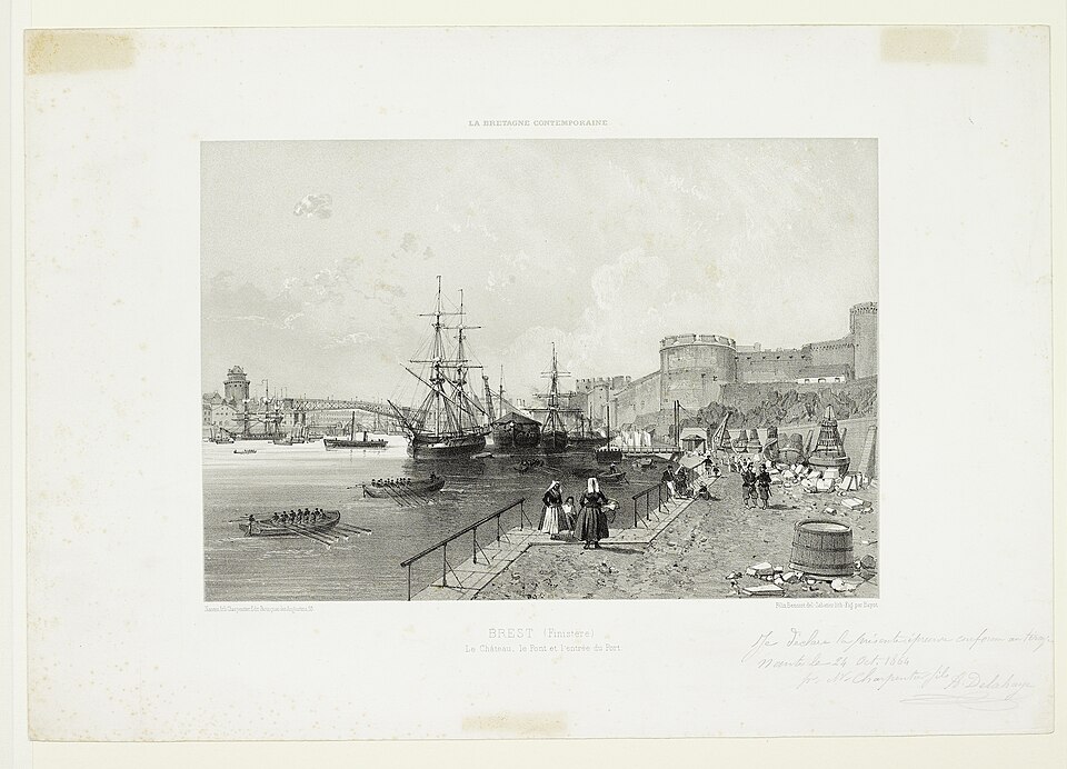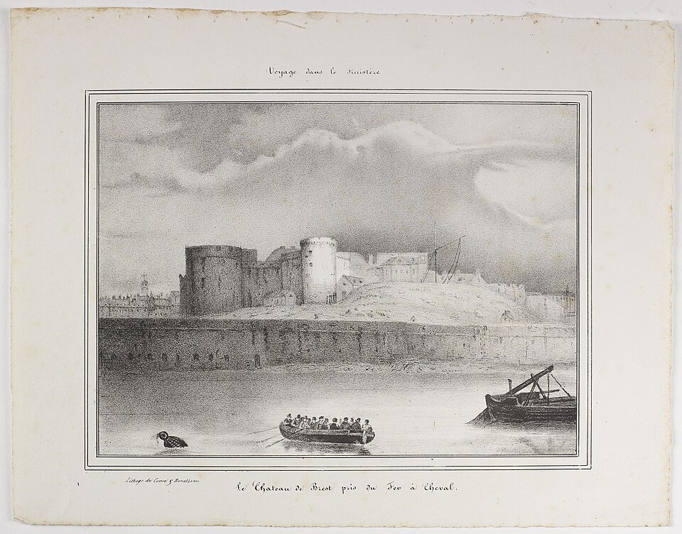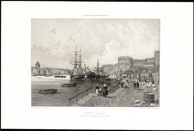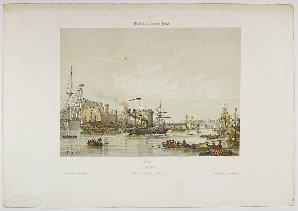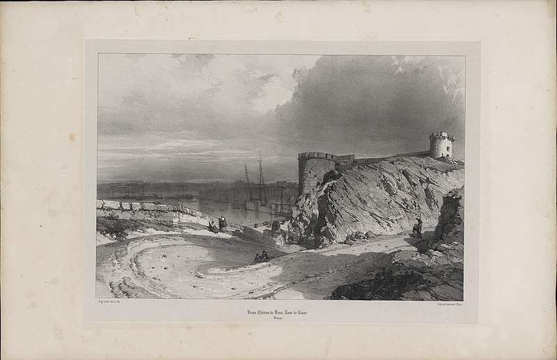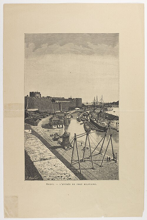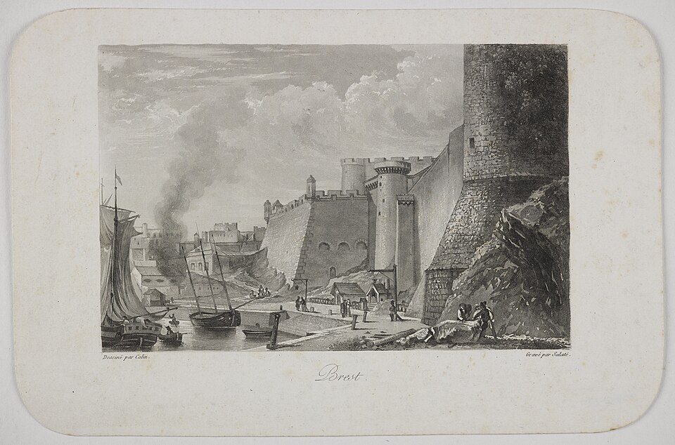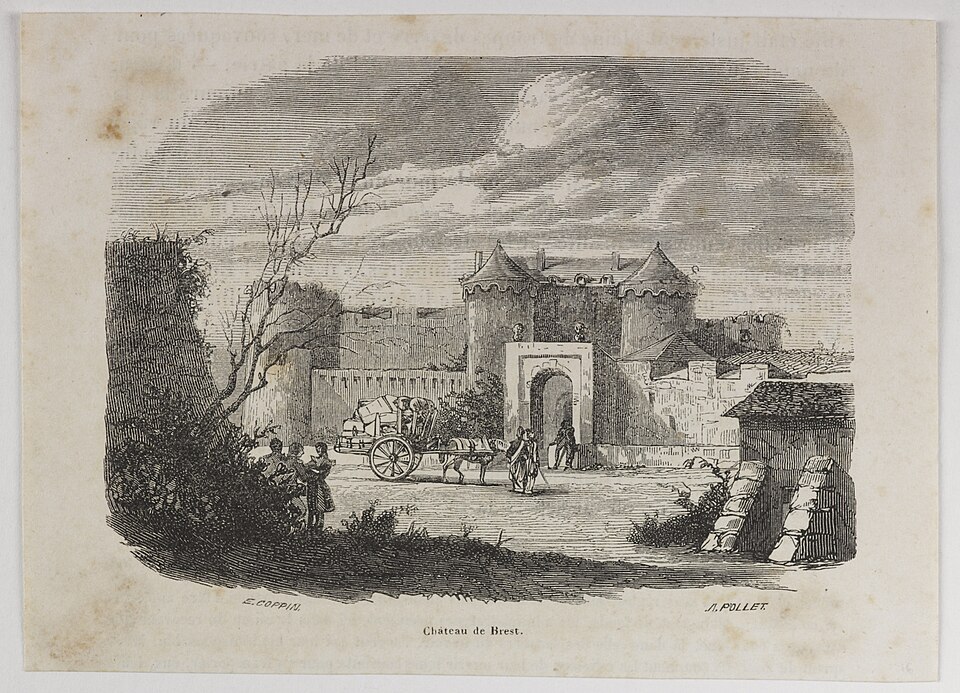 Le château de Brest est une forteresse composite, façonnée par des aménagements successifs pour répondre à l’évolution de l’art de la guerre. Implanté sur un éperon rocheux dominant l’embouchure de la Penfeld et la rade, il reprend en grande partie le tracé d’un castellum gallo-romain du Bas-Empire. Plusieurs vestiges de murailles romaines subsistent, enchâssés dans les courtines et certaines tours. Les structures visibles aujourd’hui résultent notamment d’importants chantiers des XVe et XVIIe siècles, qui ont mêlé éléments médiévaux et dispositions bastionnées adaptées à l’artillerie. Au cœur de l’ensemble, le donjon regroupe deux tours médiévales — la grosse tour dite Duchesse-Anne et la tour du Donjon — partiellement intégrées et reliées par des aménagements attribués à Vauban. La tour Duchesse-Anne, conçue comme logis seigneurial, conserve des aménagements résidentiels : celliers, cuisine à passe-plat, chambres, oratoire et latrines à chaque niveau. D’autres tours médiévales (Azénor, Madeleine, César, Paradis, etc.) forment le noyau seigneurial et ont été adaptées aux armes à feu par la modification des toitures, la création de banquettes et l’ouverture d’embrasures. À la seconde moitié du XVIe siècle, le bastion de Sourdéac enveloppant le donjon fut édifié pour recevoir de l’artillerie et abriter des casemates voûtées, complétant la protection contre une attaque terrestre. Vauban a ensuite réaménagé le château et ses abords en transformant des tours en plates‑formes d’artillerie, en casematant des souterrains et en ajoutant glacis, demi‑lunes, chemins couverts et fausse‑braie pour améliorer le flanquement. Au fil des siècles, le château a connu occupations, sièges et reconstructions et a conservé sa vocation militaire permanente. Transformé en citadelle de la place‑forte, il a été doté de casernes, d’ouvrages extérieurs et d’aménagements de garnison, dont plusieurs bâtiments ont été protégés au titre des Monuments historiques en 1923. Gravement touché par les bombardements et les combats de la Libération, l’édifice a subi la destruction de casernes et d’installations en cour, puis a fait l’objet de campagnes de restauration après la guerre. Transféré à la Marine en 1945, il accueille depuis 1953 la préfecture maritime de l’Atlantique et, depuis 1958, des collections du Musée national de la Marine installées dans les tours Paradis et le donjon. Les souterrains aménagés sous le château, notamment par l’occupant allemand, abritent aujourd’hui des états‑majors et services opérationnels liés à la mer, dont un centre opérationnel maritime et des composantes du commandement. Le site conserve aussi des traces et des mémoriaux de l’histoire maritime et scientifique, comme le monument dédié à l’expédition Lapérouse et l’inhumation des restes découverts à Vanikoro. Construit principalement en gneiss et granit, le château occupe environ cinq hectares et domine le goulet, la Penfeld et la rade, ce qui explique sa position stratégique pour le contrôle de l’accès maritime. Seuls le musée et les remparts sont aujourd’hui ouverts au public ; le reste de la citadelle demeure affecté à des services militaires et administratifs.