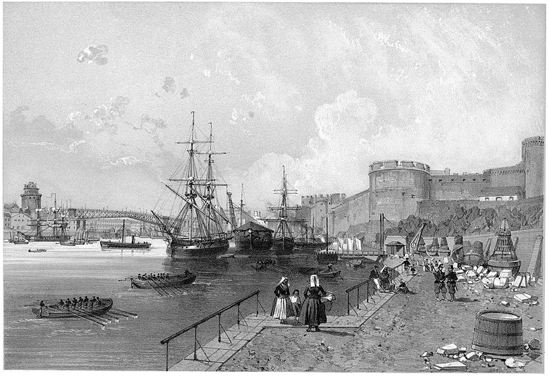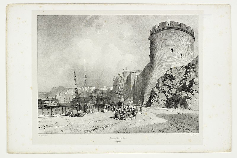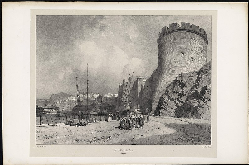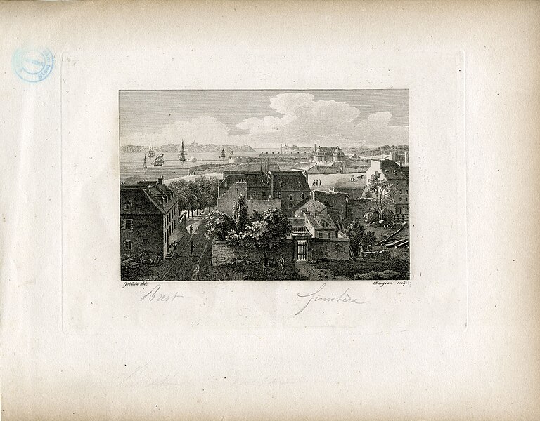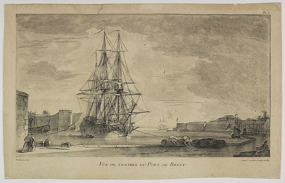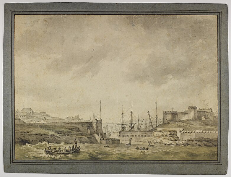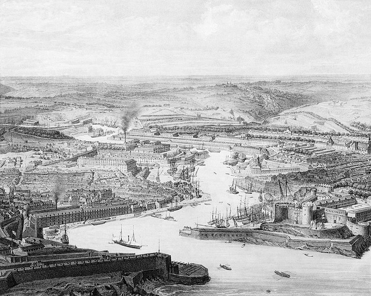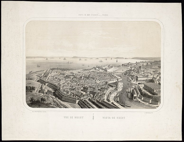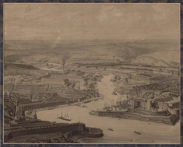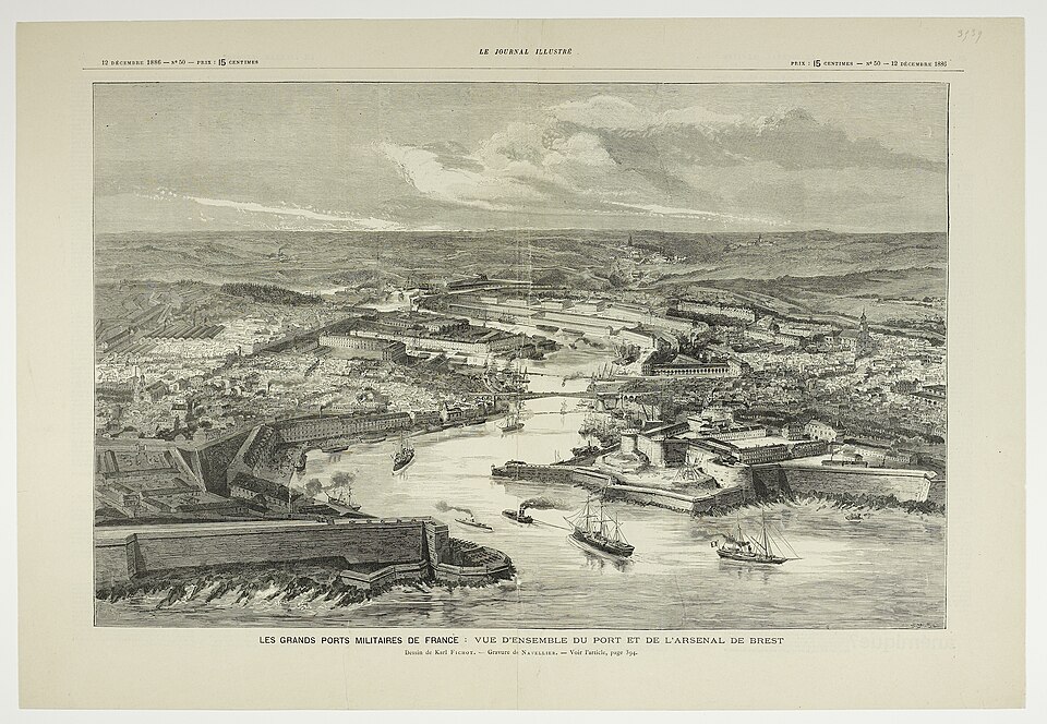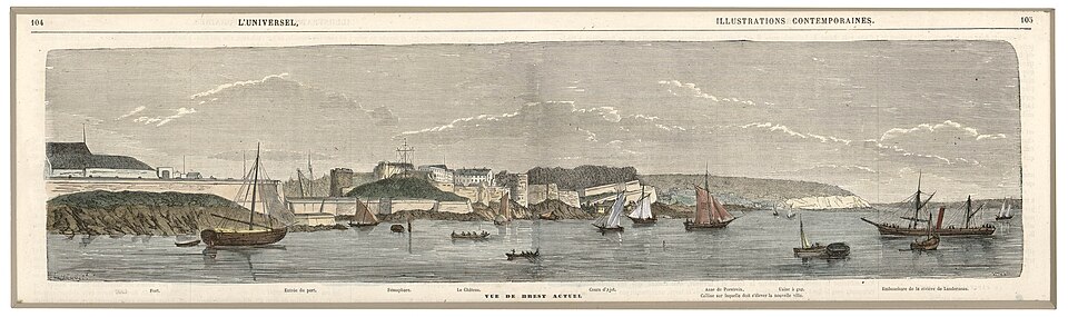 Le château de Brest est une forteresse composite, façonnée par des aménagements successifs pour répondre à l’évolution de l’art de la guerre. Implanté sur un éperon rocheux dominant l’embouchure de la Penfeld et la rade, il reprend en grande partie le tracé d’un castellum gallo-romain du Bas-Empire. Plusieurs vestiges de murailles romaines subsistent, enchâssés dans les courtines et certaines tours. Les structures visibles aujourd’hui résultent notamment d’importants chantiers des XVe et XVIIe siècles, qui ont mêlé éléments médiévaux et dispositions bastionnées adaptées à l’artillerie. Au cœur de l’ensemble, le donjon regroupe deux tours médiévales — la grosse tour dite Duchesse-Anne et la tour du Donjon — partiellement intégrées et reliées par des aménagements attribués à Vauban. La tour Duchesse-Anne, conçue comme logis seigneurial, conserve des aménagements résidentiels : celliers, cuisine à passe-plat, chambres, oratoire et latrines à chaque niveau. D’autres tours médiévales (Azénor, Madeleine, César, Paradis, etc.) forment le noyau seigneurial et ont été adaptées aux armes à feu par la modification des toitures, la création de banquettes et l’ouverture d’embrasures. À la seconde moitié du XVIe siècle, le bastion de Sourdéac enveloppant le donjon fut édifié pour recevoir de l’artillerie et abriter des casemates voûtées, complétant la protection contre une attaque terrestre. Vauban a ensuite réaménagé le château et ses abords en transformant des tours en plates‑formes d’artillerie, en casematant des souterrains et en ajoutant glacis, demi‑lunes, chemins couverts et fausse‑braie pour améliorer le flanquement. Au fil des siècles, le château a connu occupations, sièges et reconstructions et a conservé sa vocation militaire permanente. Transformé en citadelle de la place‑forte, il a été doté de casernes, d’ouvrages extérieurs et d’aménagements de garnison, dont plusieurs bâtiments ont été protégés au titre des Monuments historiques en 1923. Gravement touché par les bombardements et les combats de la Libération, l’édifice a subi la destruction de casernes et d’installations en cour, puis a fait l’objet de campagnes de restauration après la guerre. Transféré à la Marine en 1945, il accueille depuis 1953 la préfecture maritime de l’Atlantique et, depuis 1958, des collections du Musée national de la Marine installées dans les tours Paradis et le donjon. Les souterrains aménagés sous le château, notamment par l’occupant allemand, abritent aujourd’hui des états‑majors et services opérationnels liés à la mer, dont un centre opérationnel maritime et des composantes du commandement. Le site conserve aussi des traces et des mémoriaux de l’histoire maritime et scientifique, comme le monument dédié à l’expédition Lapérouse et l’inhumation des restes découverts à Vanikoro. Construit principalement en gneiss et granit, le château occupe environ cinq hectares et domine le goulet, la Penfeld et la rade, ce qui explique sa position stratégique pour le contrôle de l’accès maritime. Seuls le musée et les remparts sont aujourd’hui ouverts au public ; le reste de la citadelle demeure affecté à des services militaires et administratifs.